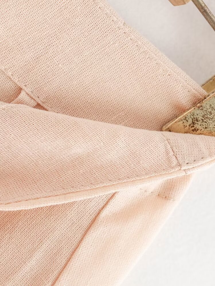 国境を越えた欧米の女装2025アマゾンtk夏y 2k起爆純色綿麻のタック付きブラウス
