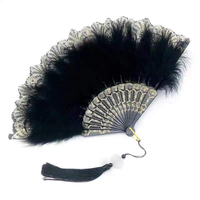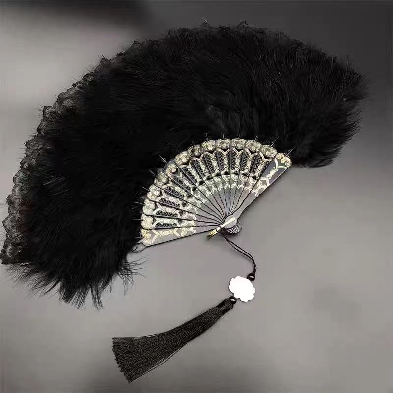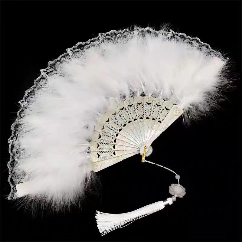 新商品の古典舞踊のチャイナドレスのショーの扇風機のネットの赤い復古風の漢服のレースの扇風機の古風のロリータの羽毛の扇風機