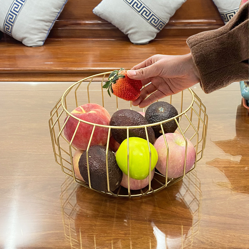 クリエイティブホームフルーツバスケットライト高級ゴールデンアイアン収納バスケット北欧スタイルのリビングルームデスクトップスナックスナックキャンディバスケット