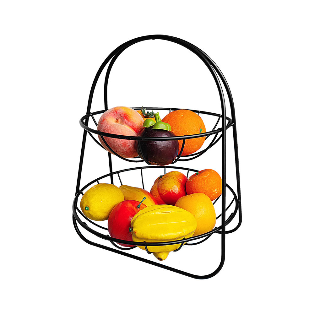 マットブラック二層鉄フルーツバスケットホームリビングルームコーヒーテーブルクリエイティブフルーツプレートキッチン野菜バスケット排水バスケット