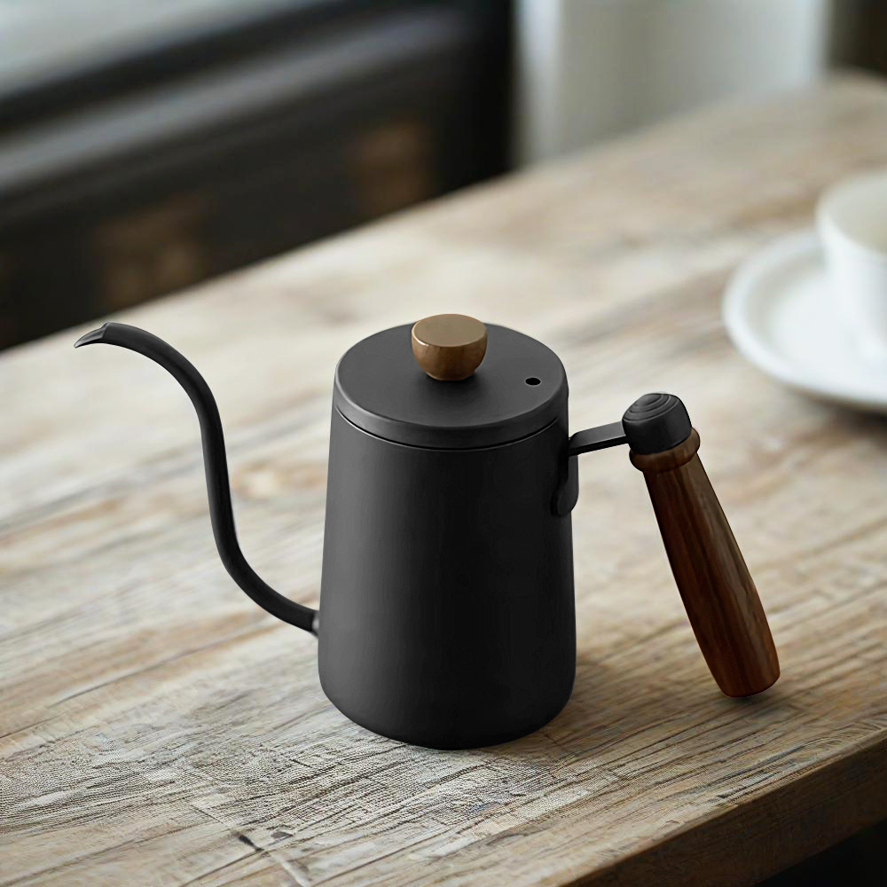 新しいコーヒーポット家庭用ハイカバー木製ハンドルステンレス鋼手淹れポット細口長口耳掛け手淹れコーヒーポット