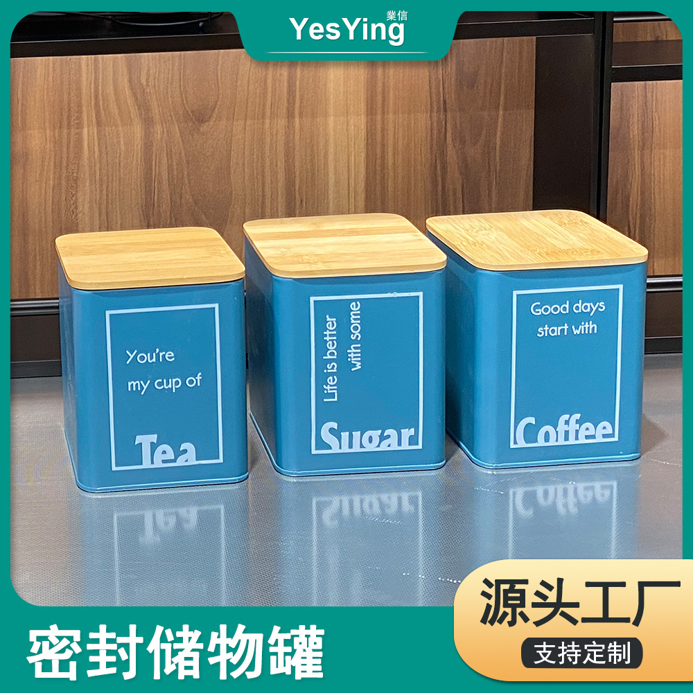 インスタ风鉄芸シール缶セット茶叶コーヒーシュガーストレージ缶盖付きアクセサリー収纳パンシールボックス