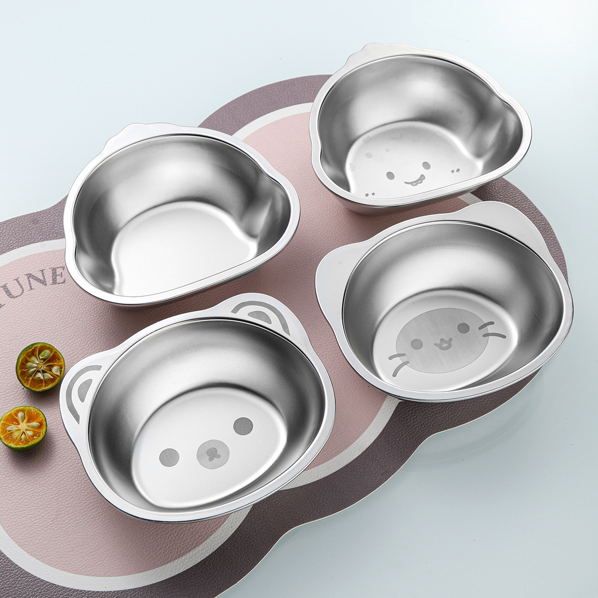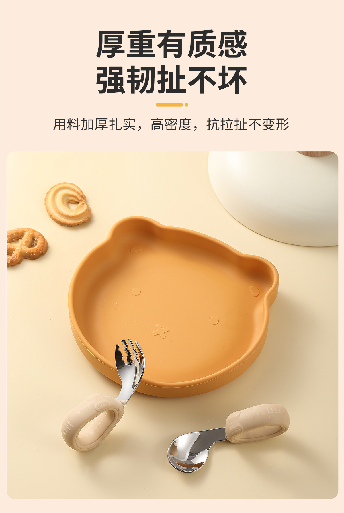 卡通小熊儿童辅食碗304不锈钢儿童餐盘宝宝学吃饭带吸盘防摔碗勺