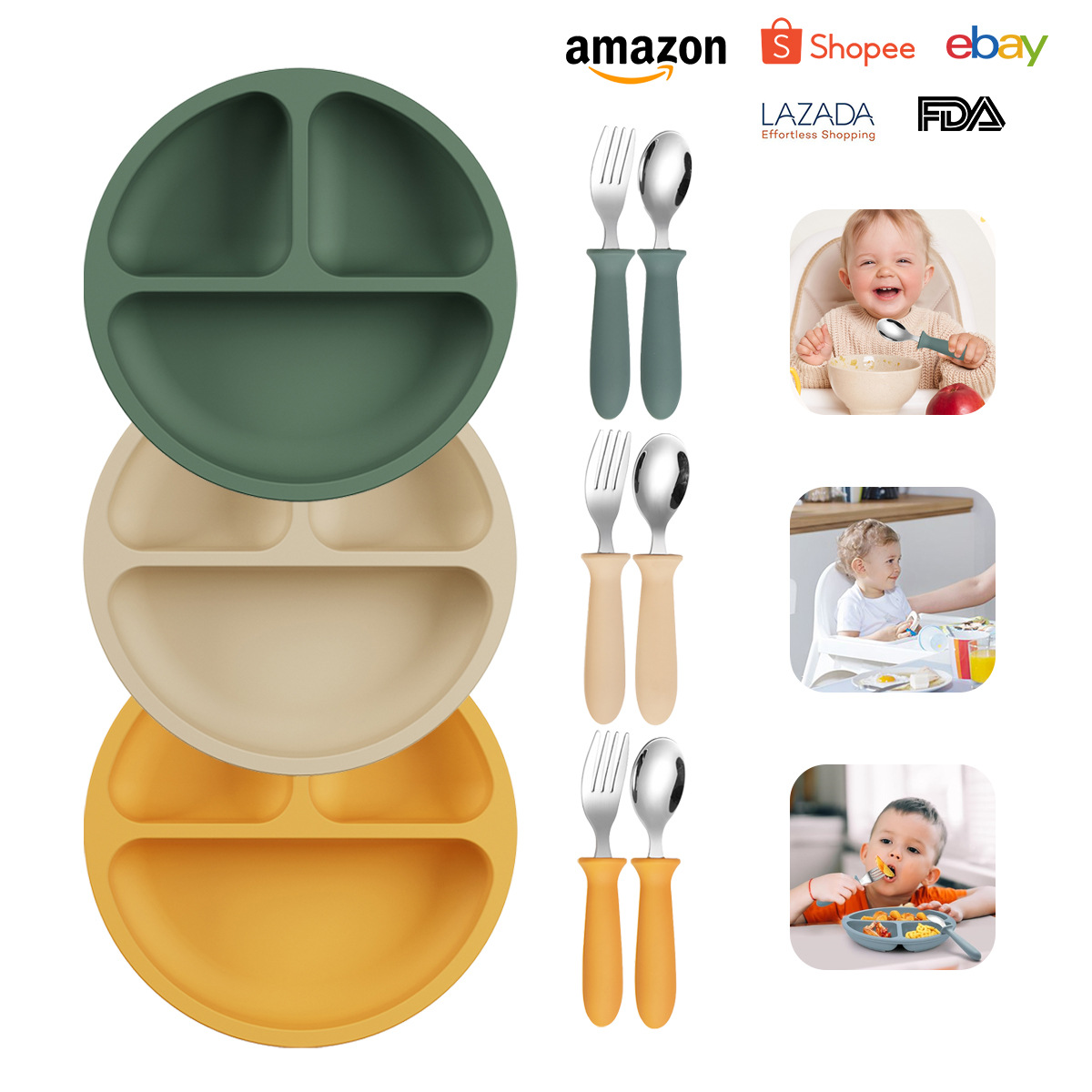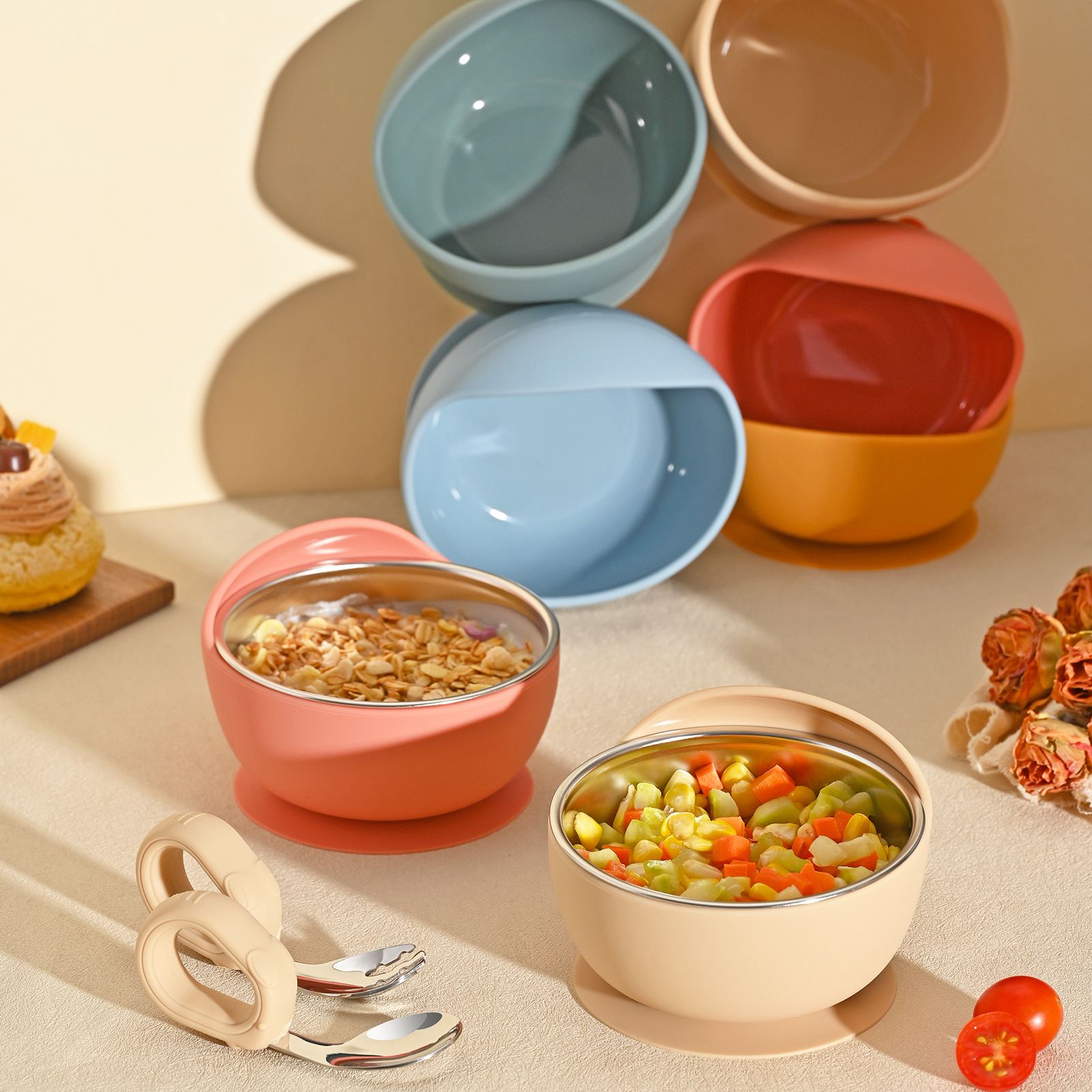 国境を越えた乳幼児シリコンボウル赤ちゃん補助食器食品級児童転倒防止吸盤ボウル飼育食器セット