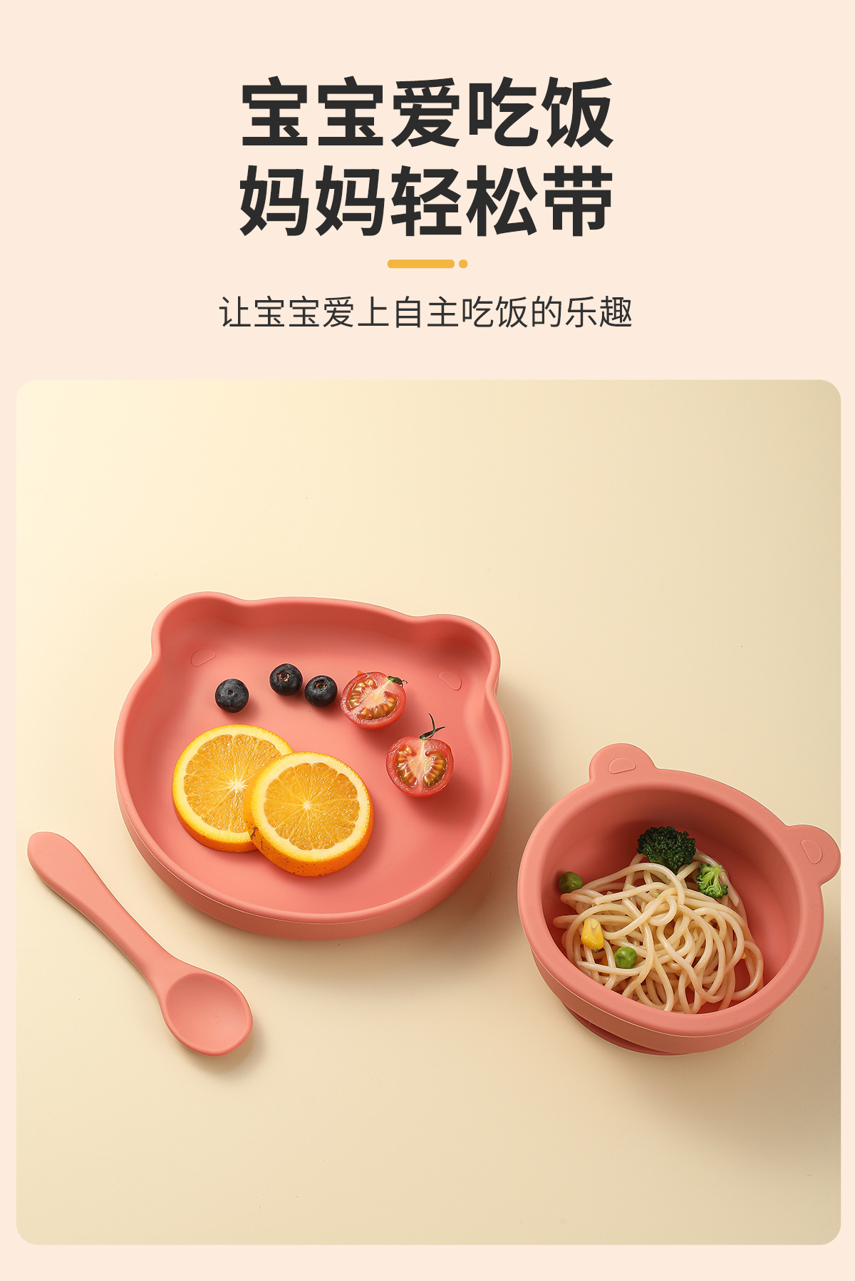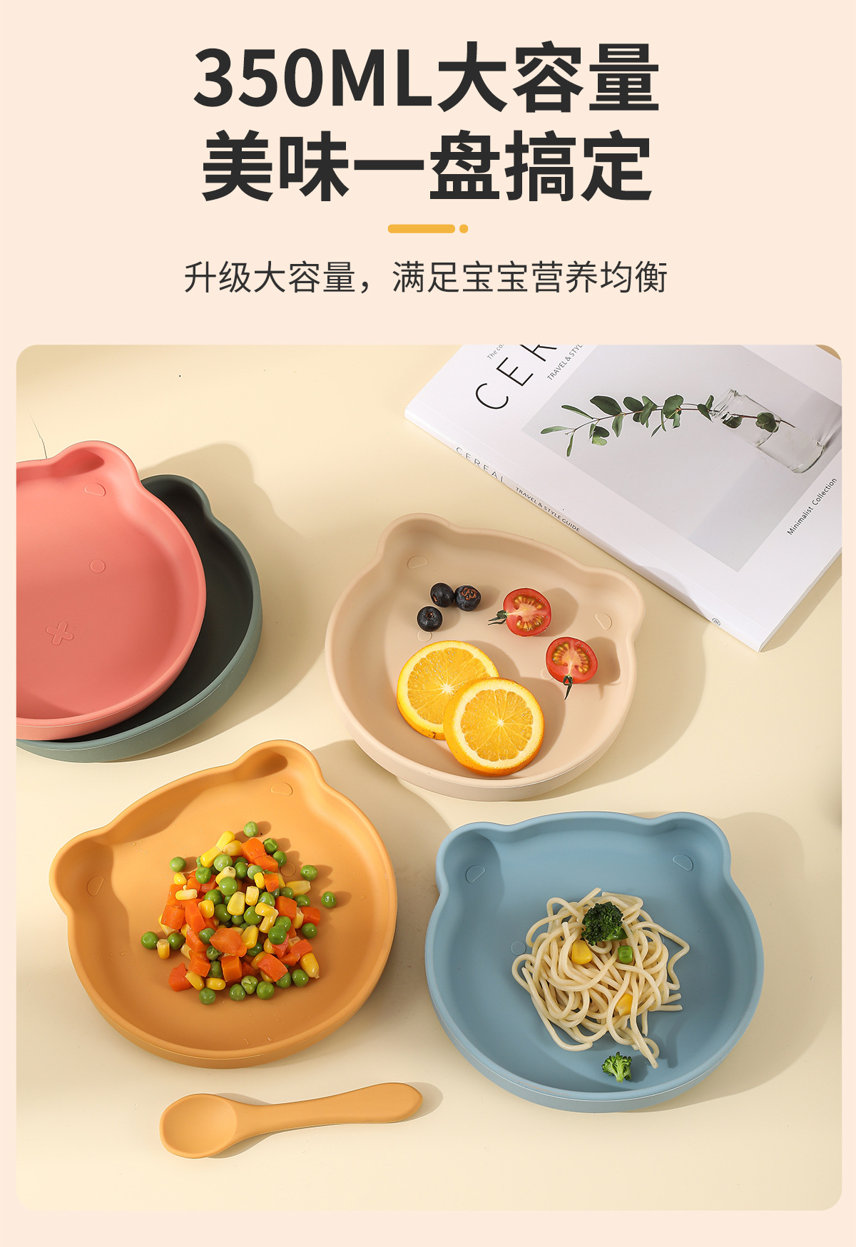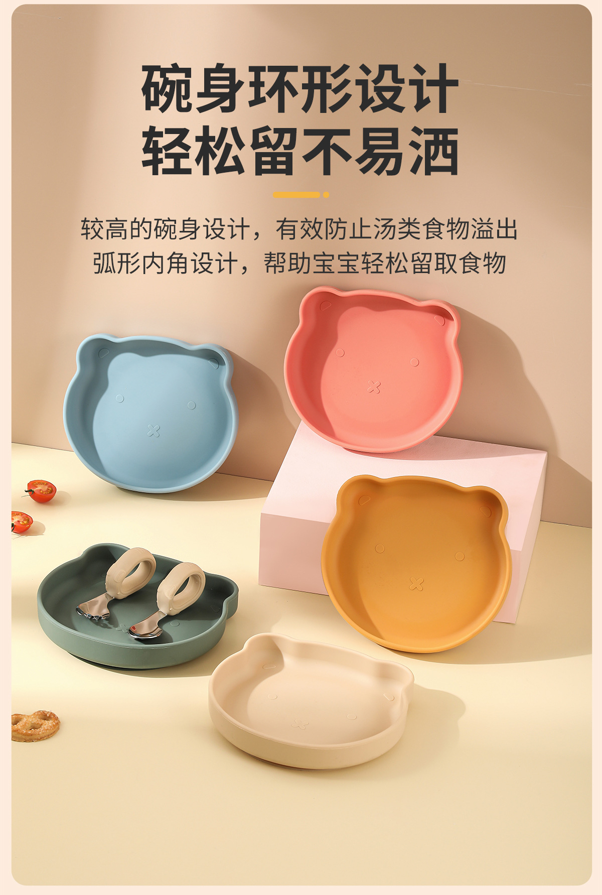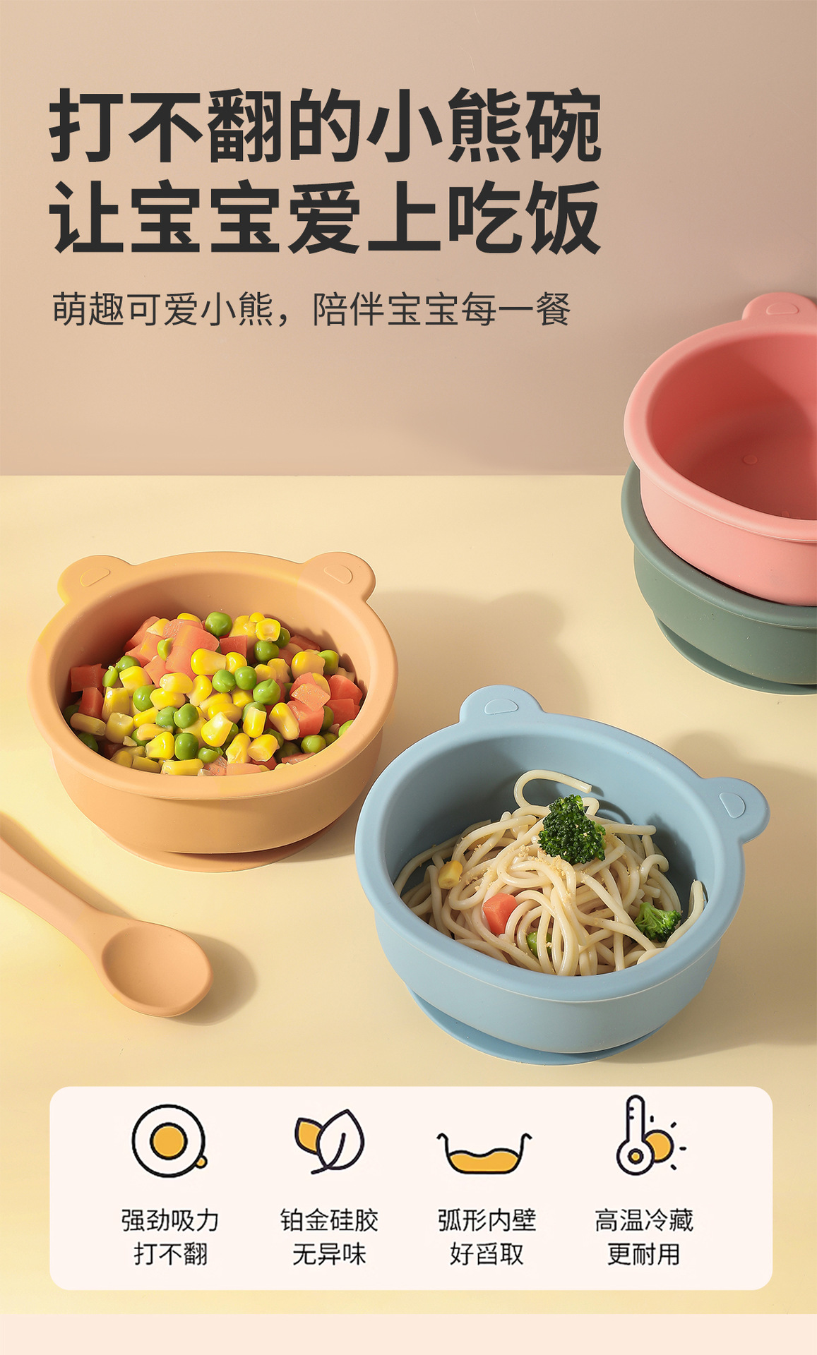 国境を越えた人気のクマのベビーボウル、子供用シリコンボウル、プレート、食べることを学ぶ、こぼれ防止の補助フードボウル、ベビー食器、火傷防止