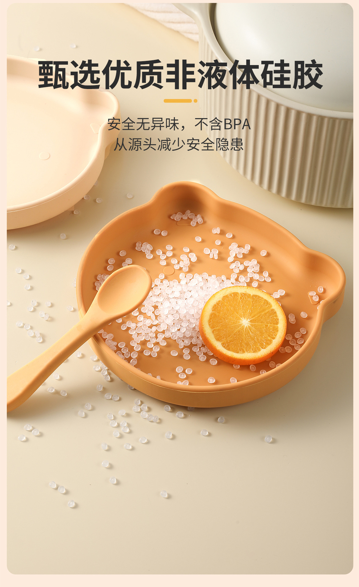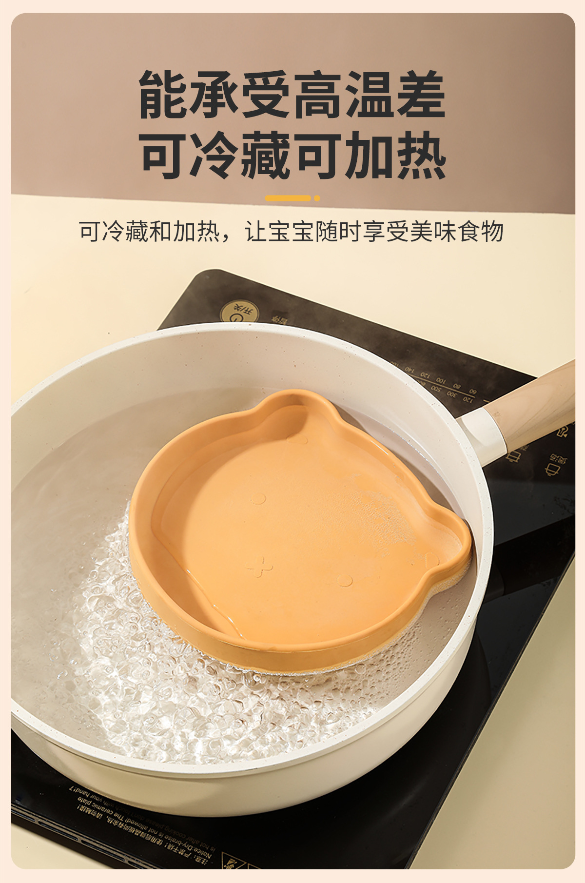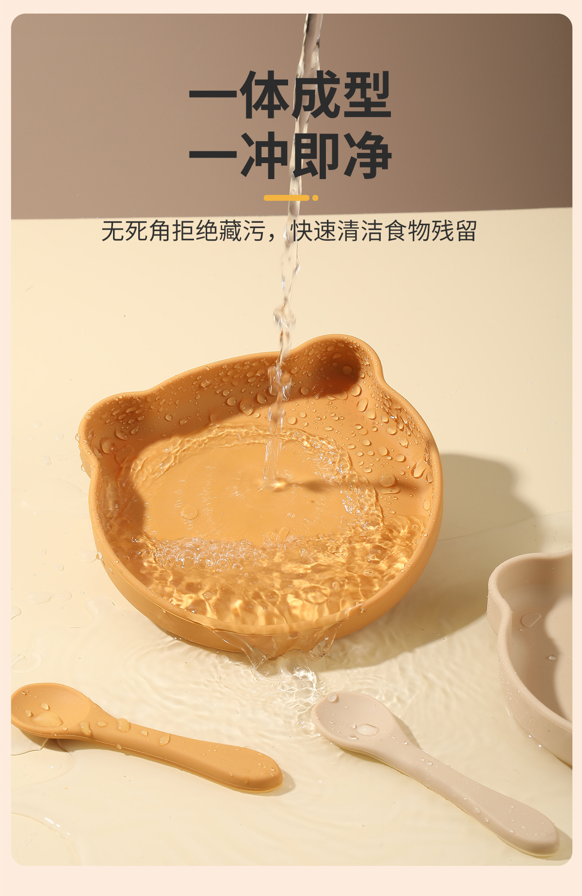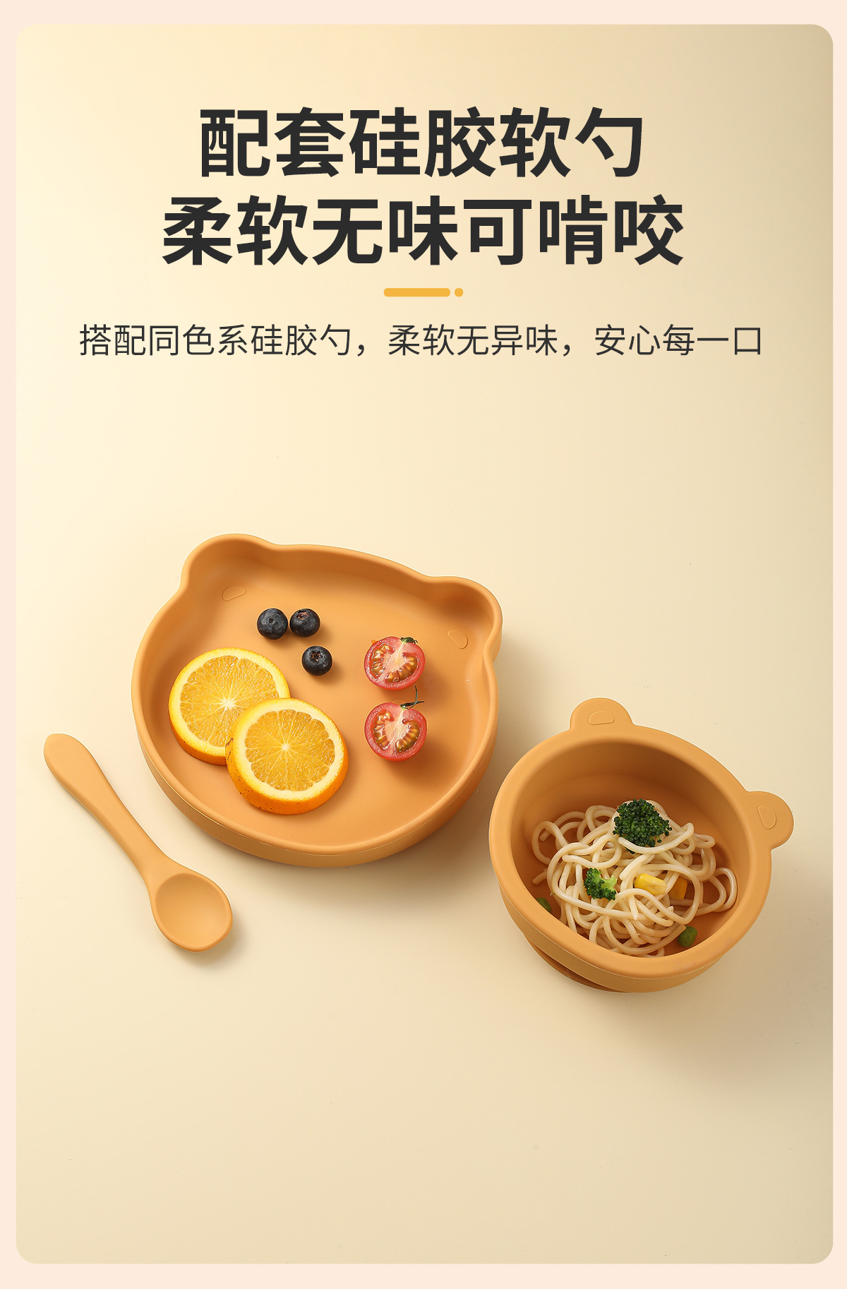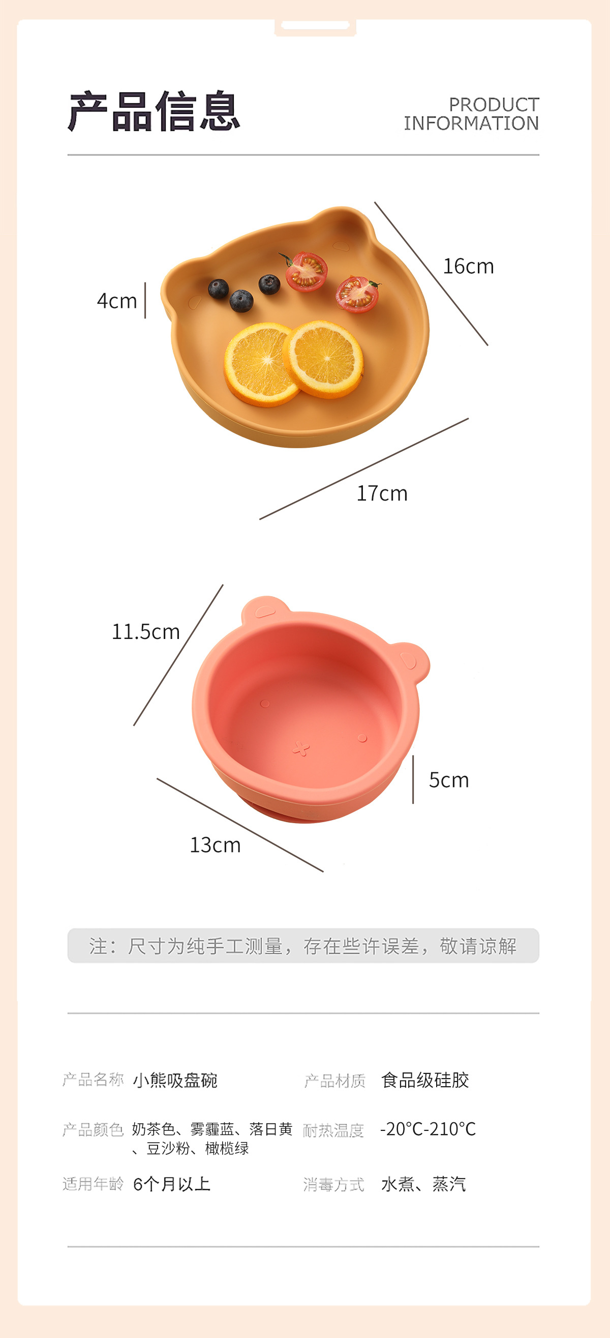 国境を越えた人気のクマのベビーボウル、子供用シリコンボウル、プレート、食べることを学ぶ、こぼれ防止の補助フードボウル、ベビー食器、火傷防止
