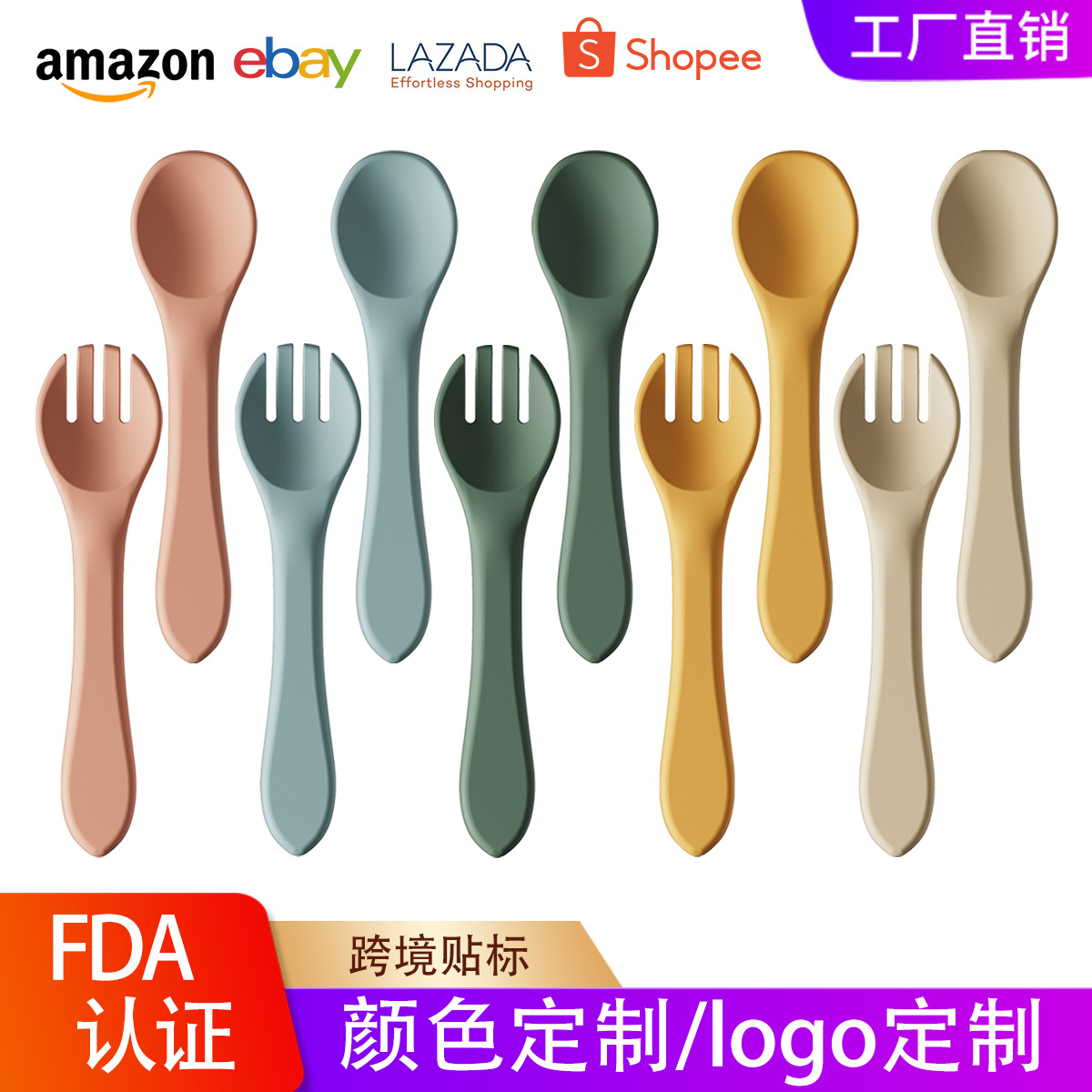 国境を越えたシリコンスプーン赤ちゃん補助食フォークスプーン赤ちゃん食事飼育スプーンフォーク子供食器シリカゲルソフトスプーン