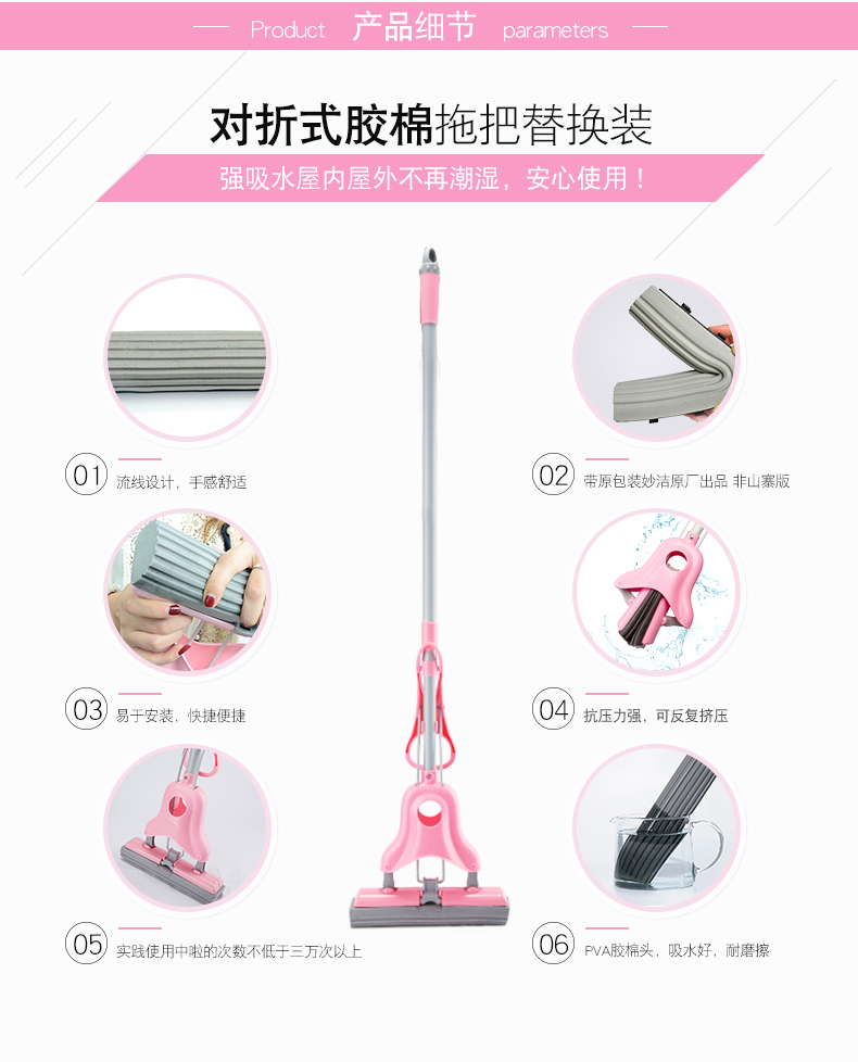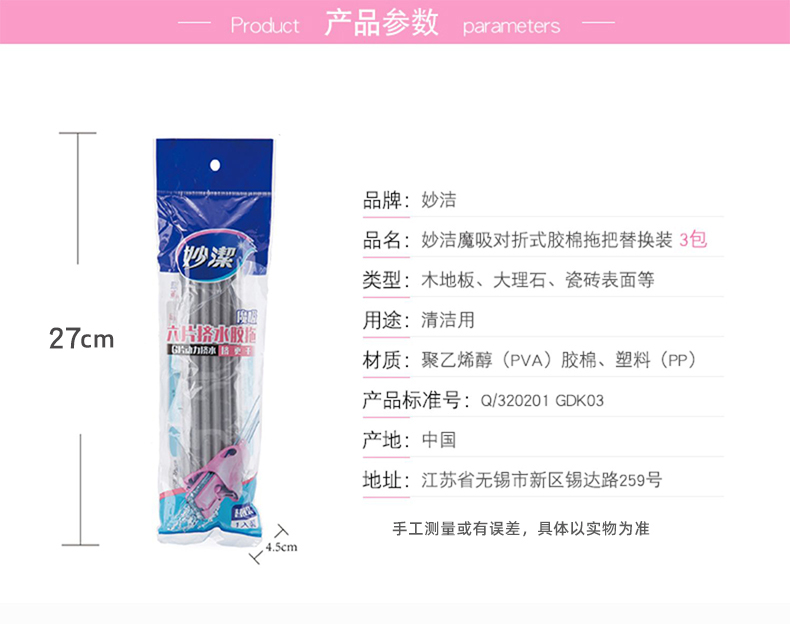 妙潔魔吸対折式ゴム綿モップ交換3個入りゴム綿頭