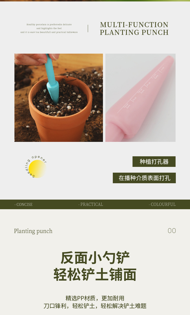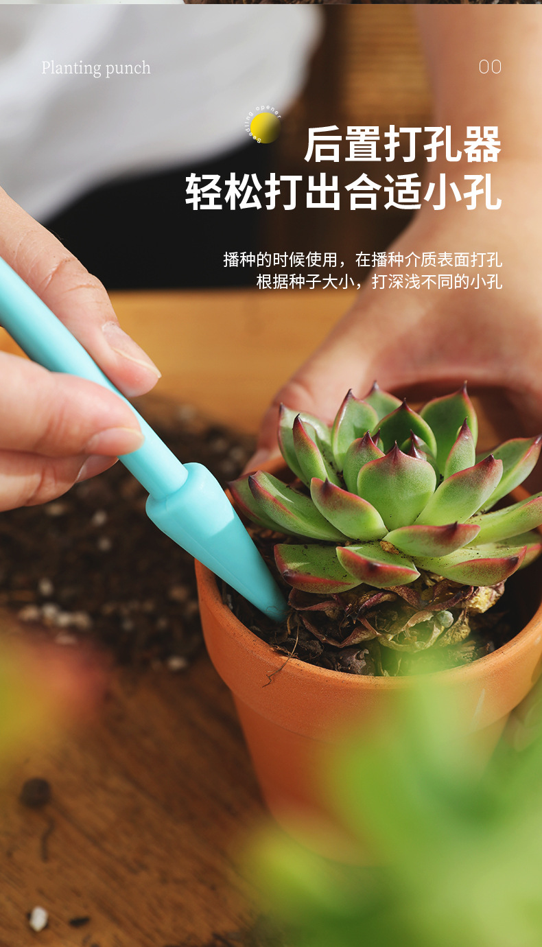 植物の苗の穴あけ器の種まきの穴の園芸の栽培道具の鉢植えの苗の移植のたらいの道具