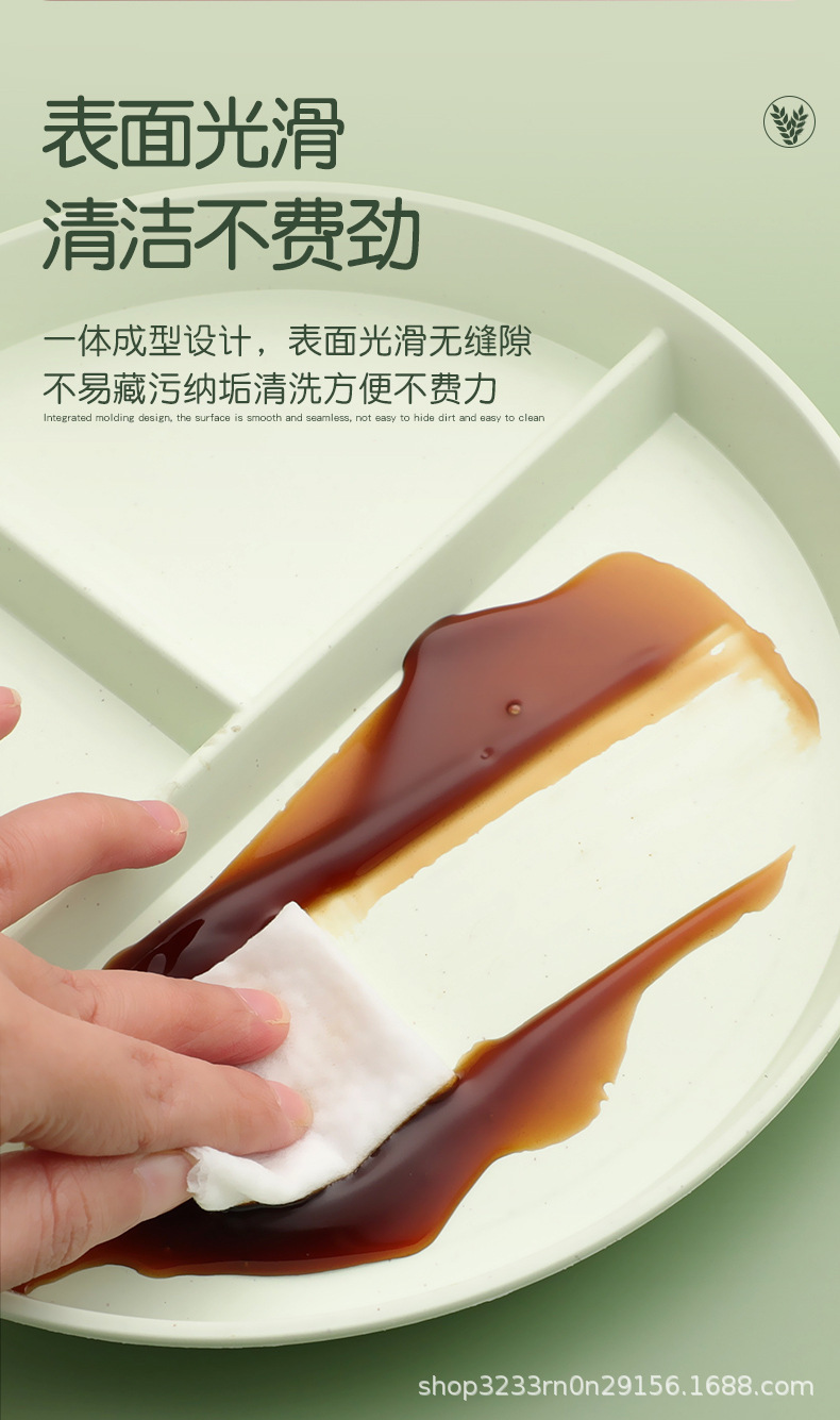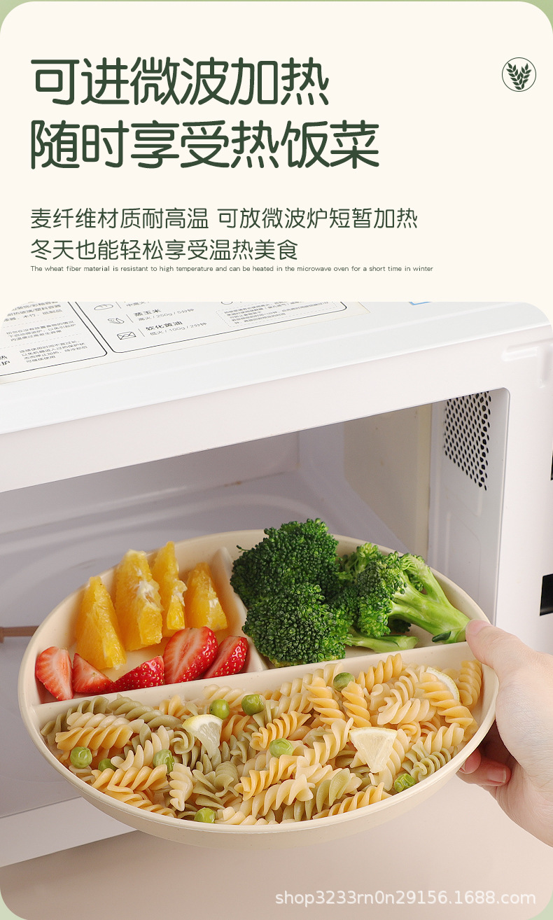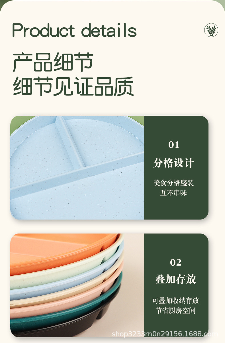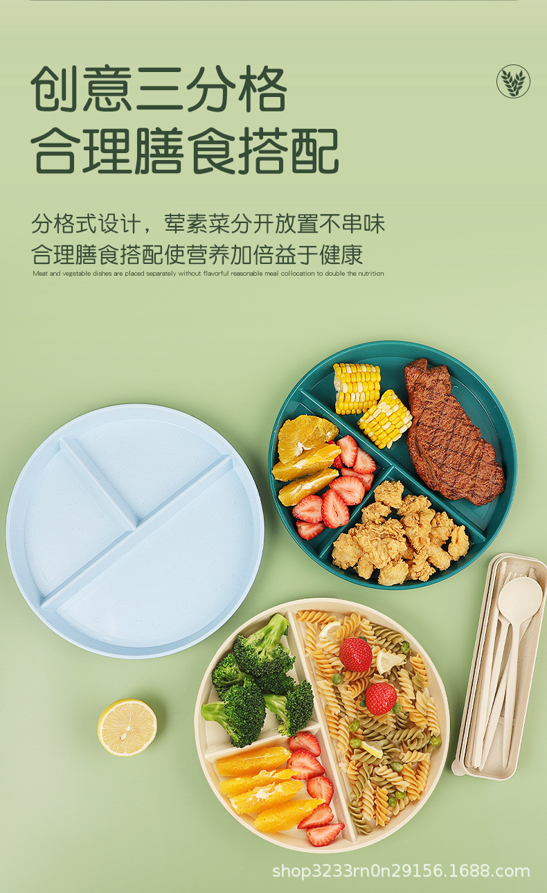 小麦わらの食事皿の丸い三段の仕切り皿の落下防止家庭用プラスチック皿の段のお菓子の朝食皿の果物皿