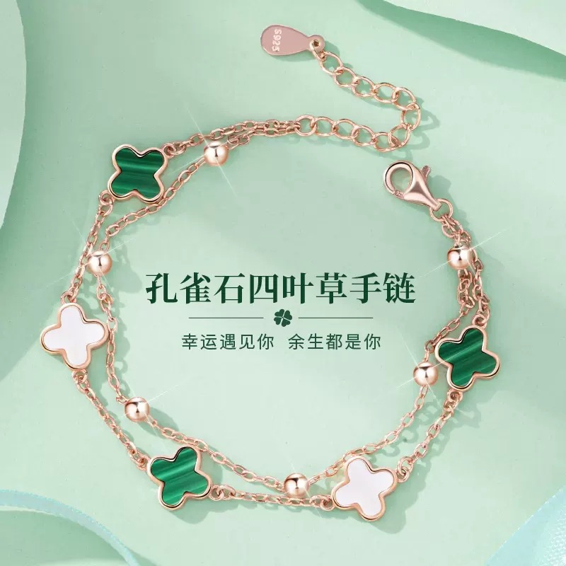 クローバーブレスレット女子純銀五花手環二重閨蜜手飾りins小衆デザイン2022年新製品