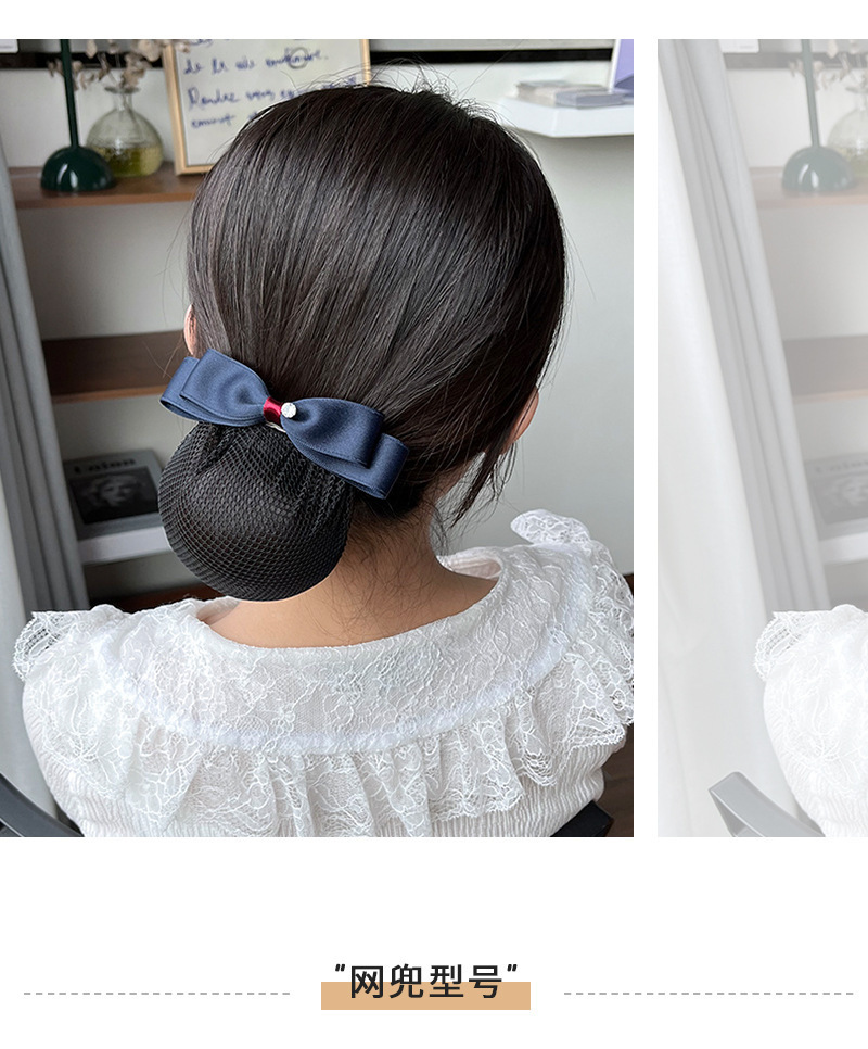 布兜髪網シンプルレース職業頭花女性仕事盤髪網兜銀行空乗ホテル蝶結びヘアクリップ
