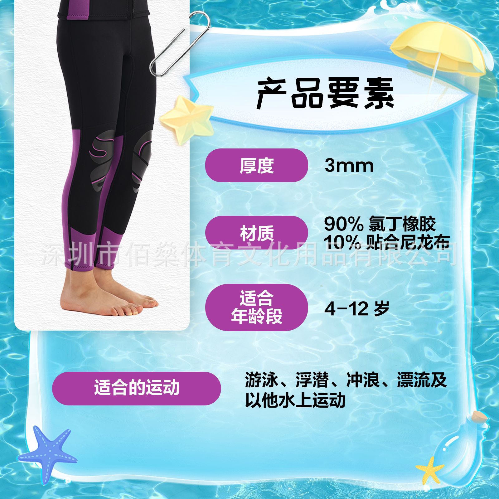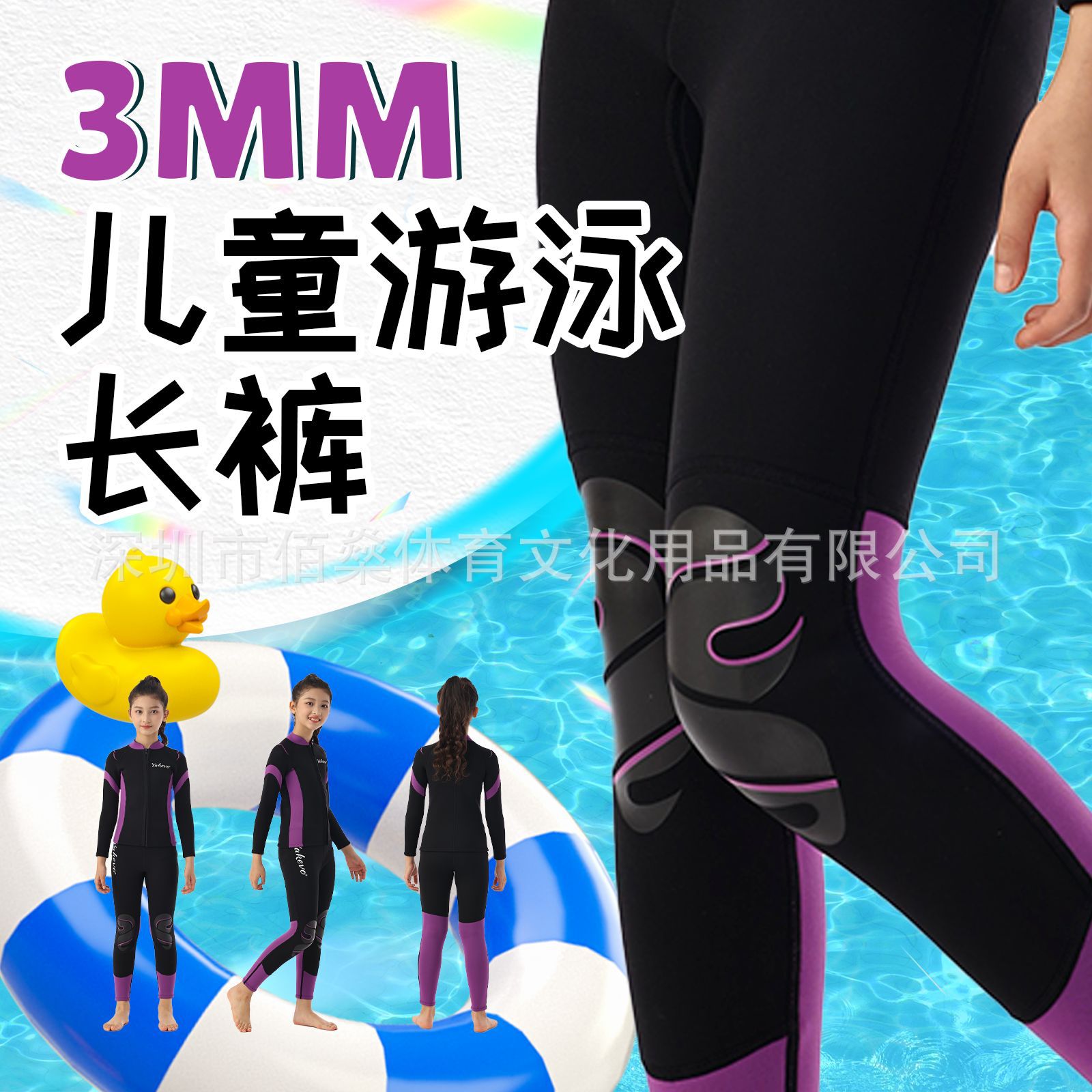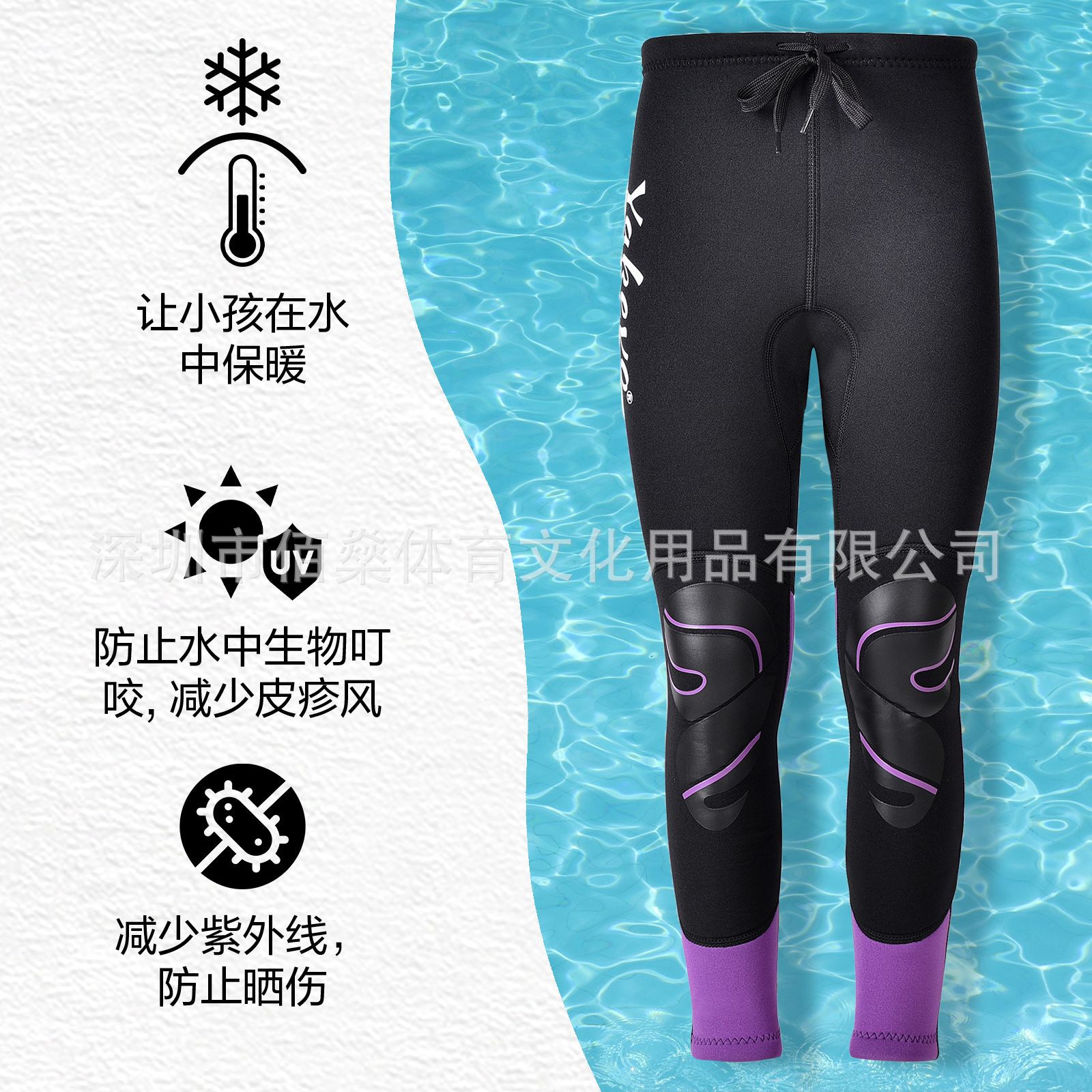 3mm潜水ズボン子供男女長ズボン黒紫水上運動水泳長ズボンネオプレン保温日焼け止め