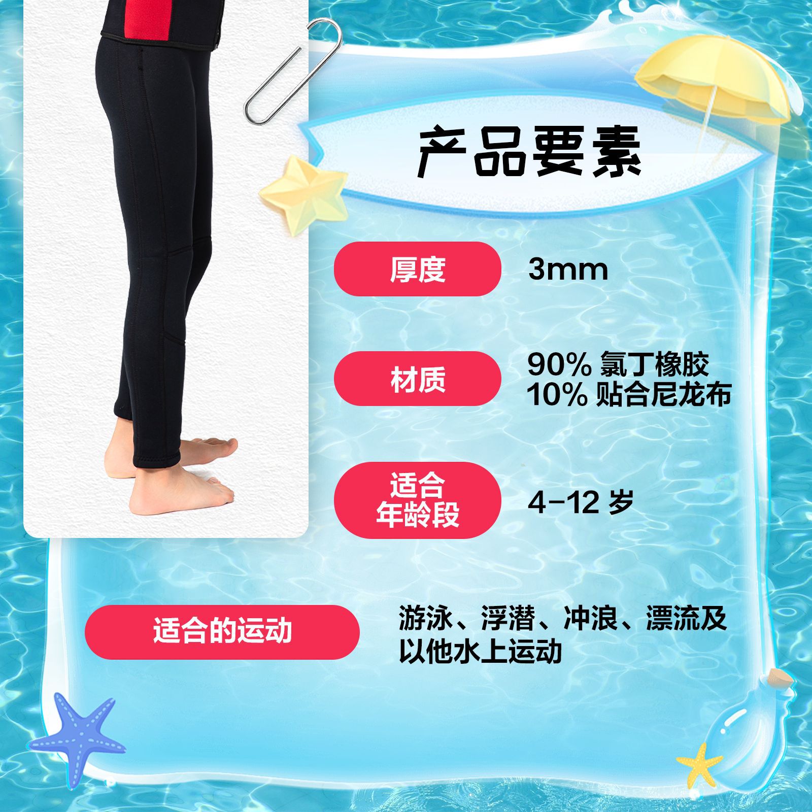 3mm子供用分割式ダイビングスーツトップスクラゲウェットスーツウォータースポーツサーフィン水泳保温防寒日焼け止めパンツ