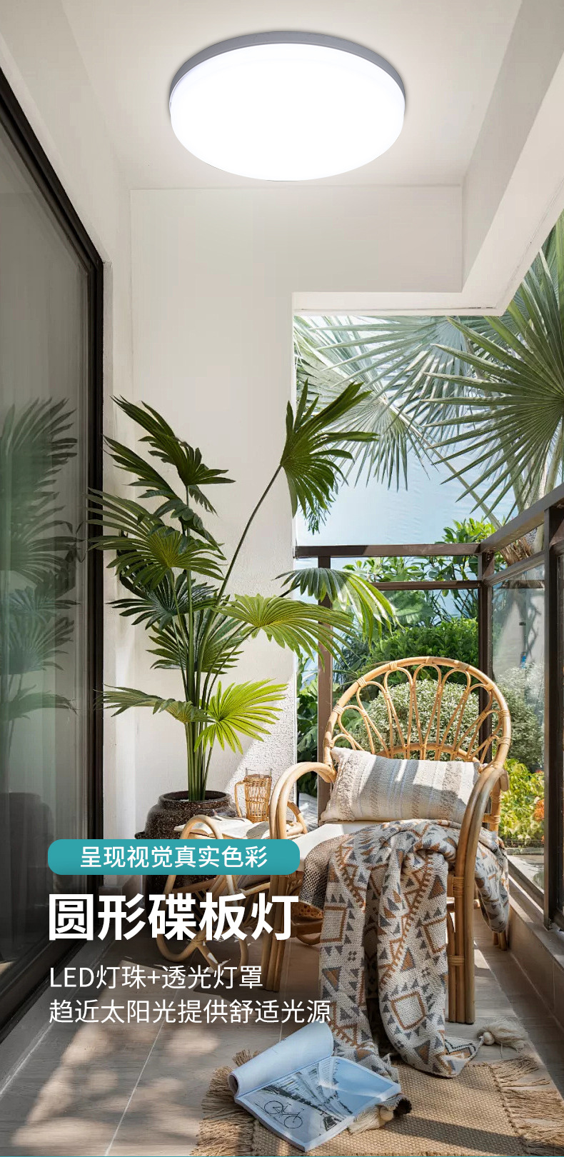 円形ディスクライト家庭用室内パネルライト明装LED天井灯三防陽電気スタンド通路廊下灯