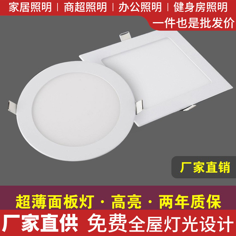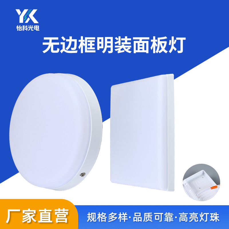 led明装面板灯商用圆形方形免开孔筒灯平板灯客厅厨房过道吸顶灯