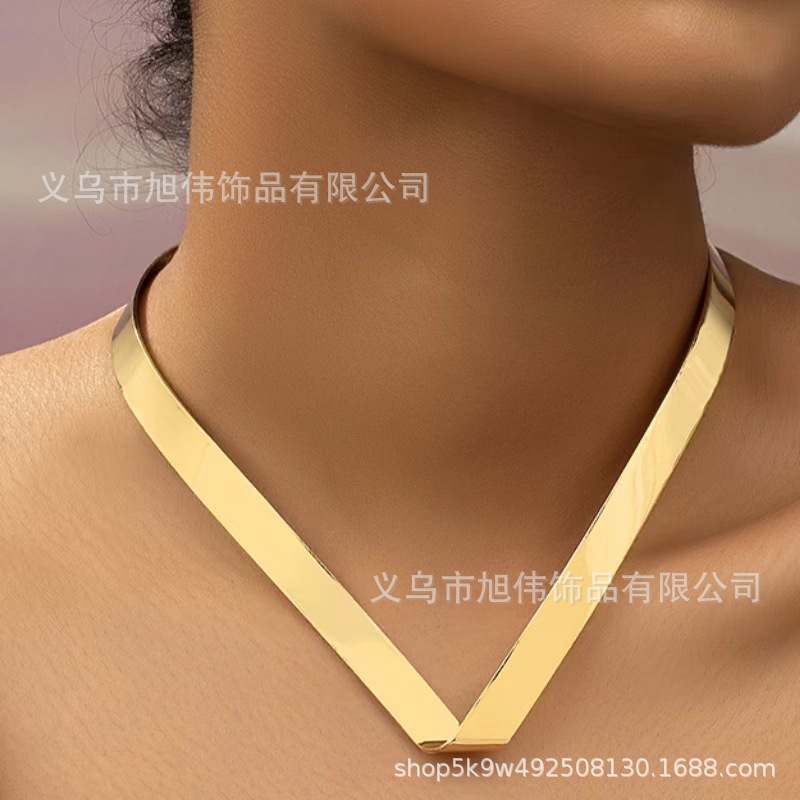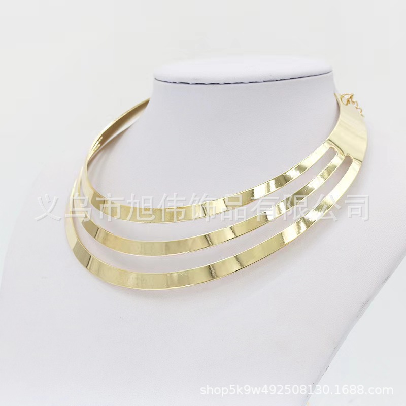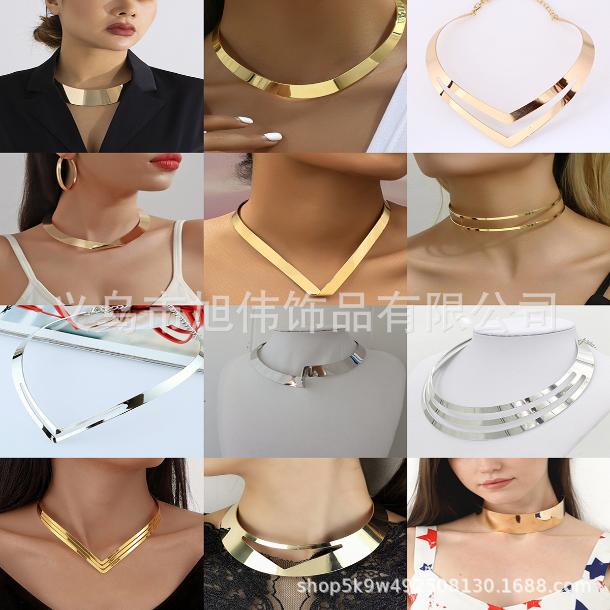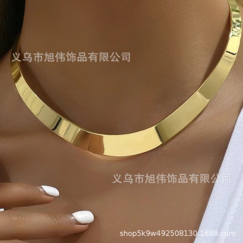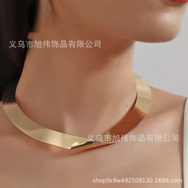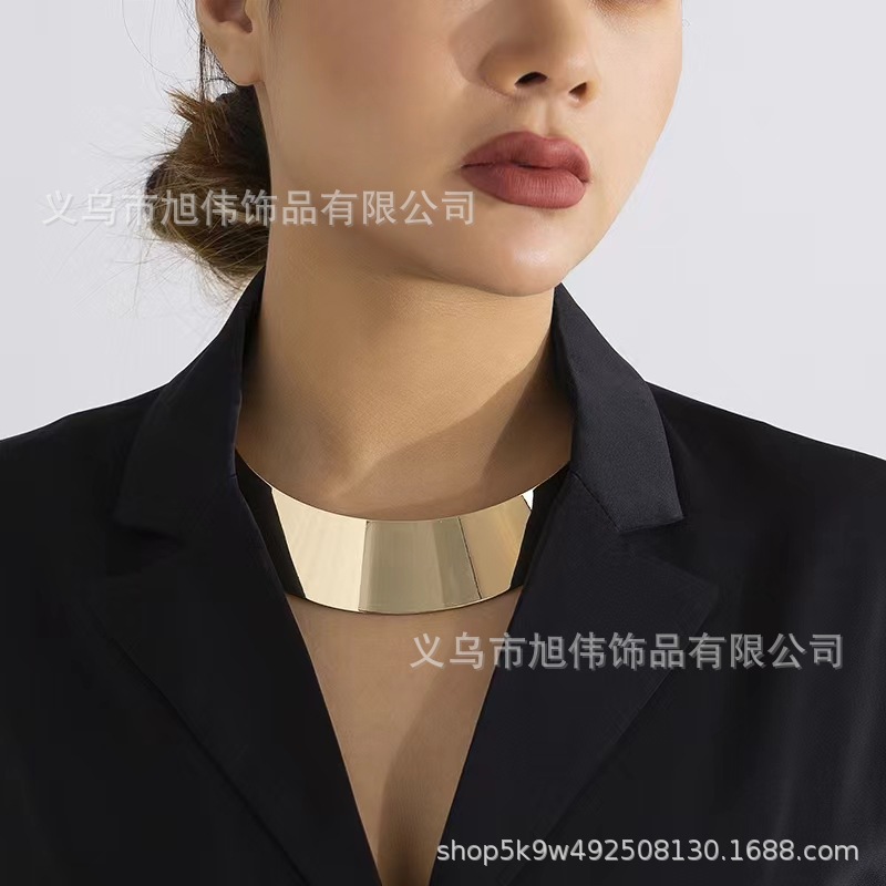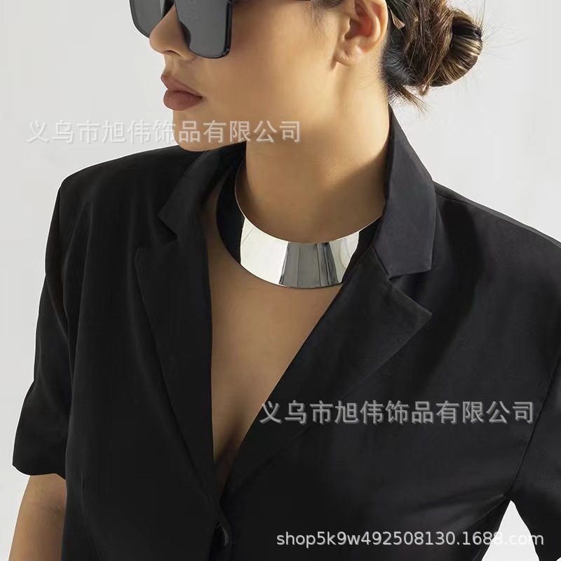 ヨーロッパとアメリカのクロスボーダージュエリーファッショナブルでシンプルなメタルチョーカーパーソナライズされた誇張された光沢のあるネックレスネックレスアクセサリー