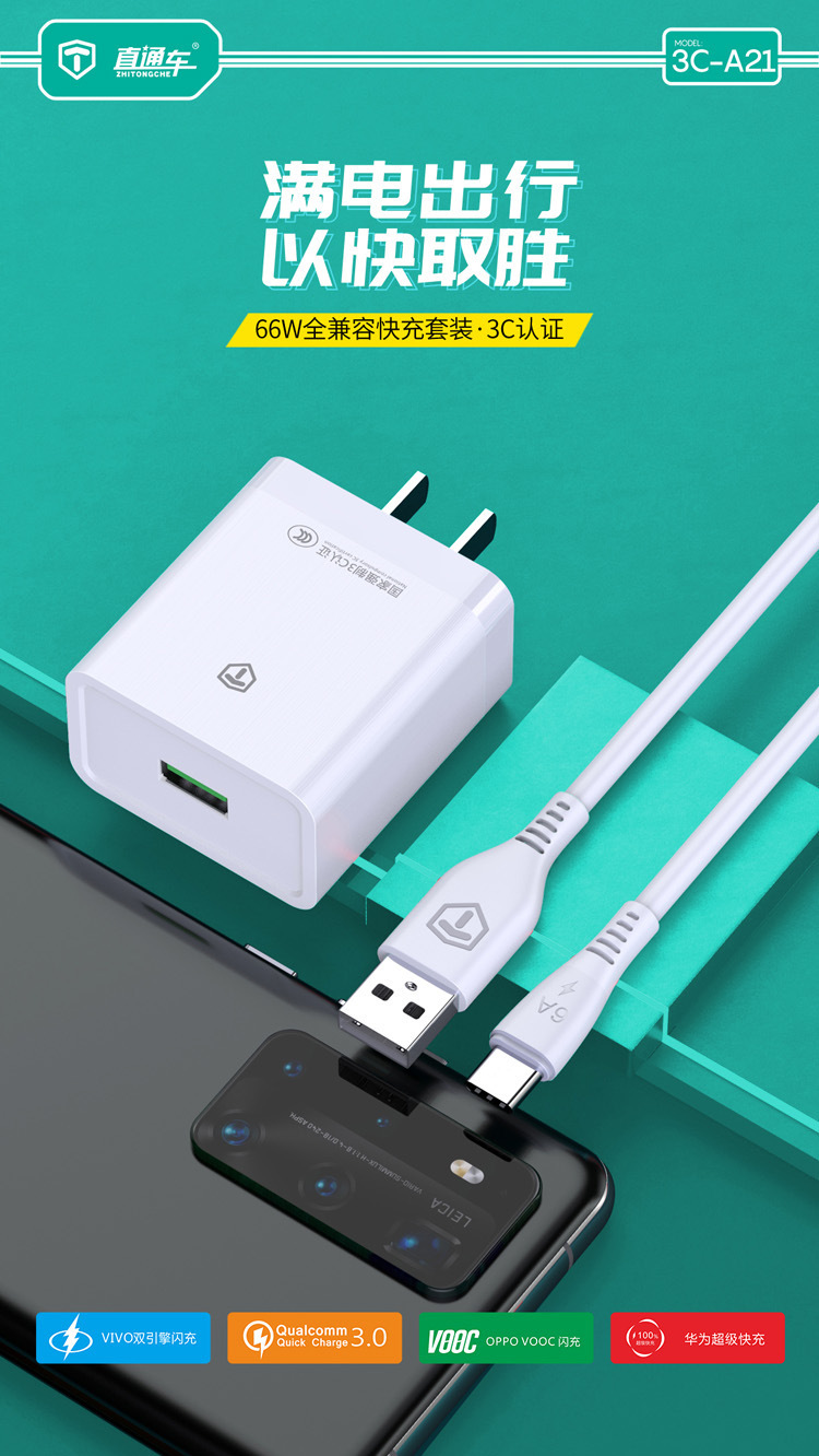 3C認証66W超急速充電器セットはアンドロイドアップル華為TypeCフラッシュ充電ケーブルを適用する