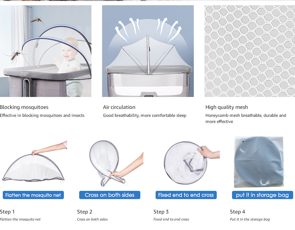 新生儿床蚊帐婴儿折叠拉链蚊帐便捷式婴儿床帐篷防摔蚊帐免安装