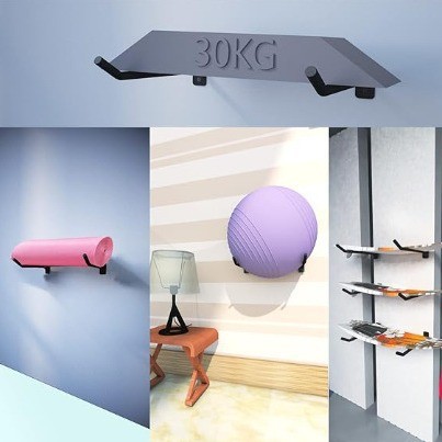 シンプルな家庭用の太くなった壁掛け式のヨガボールラックは、重い棚の物品の自転車運動器材を支えています。