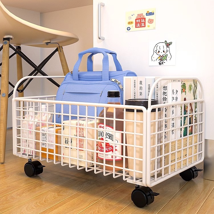 收纳篮放置小推车筐放包书包书本可移动盒桌下滑轮置物架工位