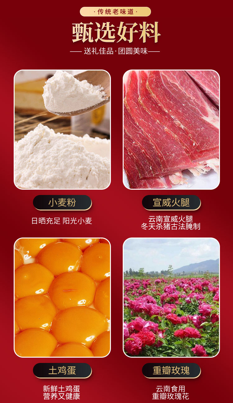 云腿月饼,口味多种(精致云腿,云腿蛋黄,鲜花云腿,云腿蛋黄)等,月饼的克重也不同(25g,30g,50g,80g),欢迎各位新老客户来电咨询。