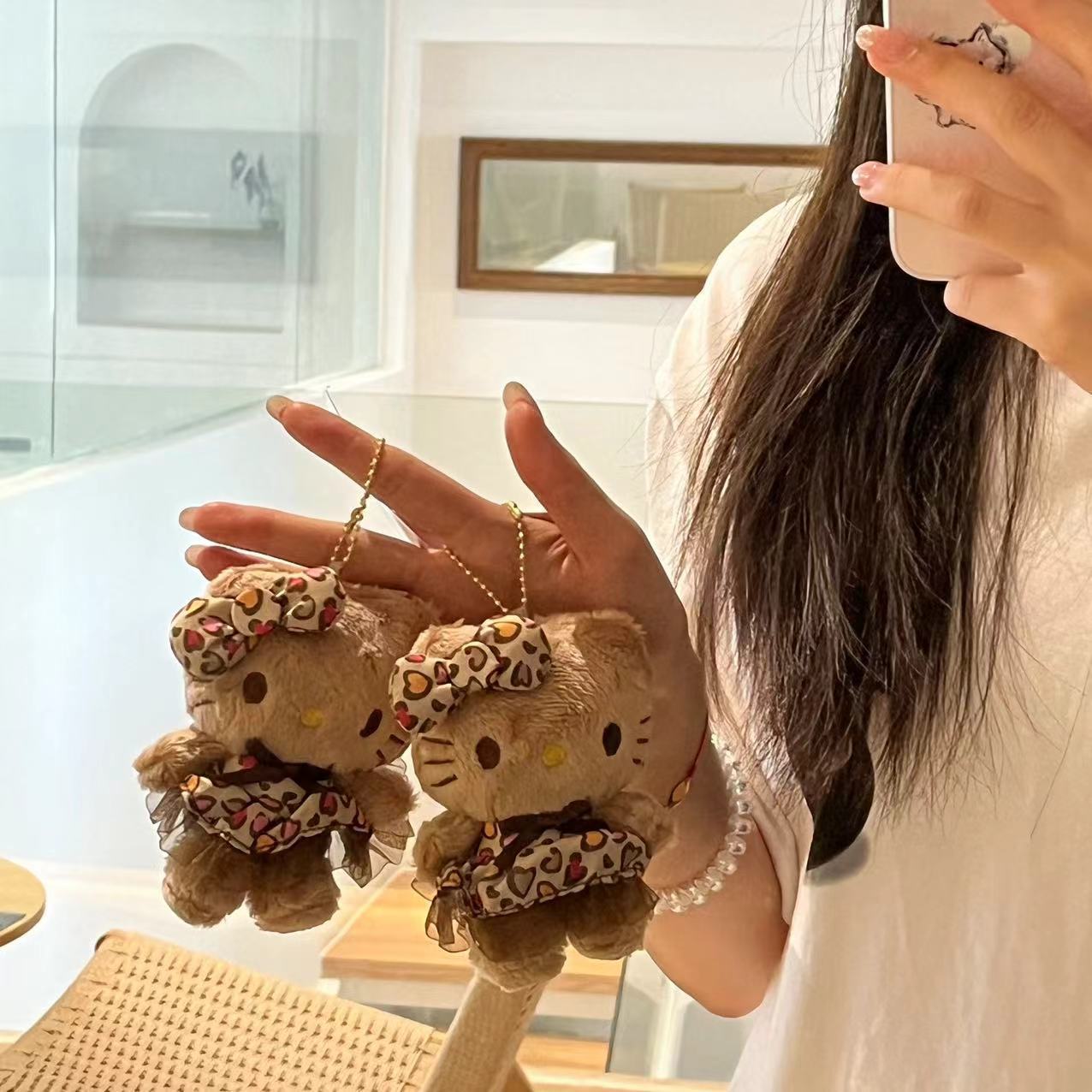 美拉德kt猫毛绒玩偶 包包小挂件钥匙扣hellokitty豹纹公仔小挂饰