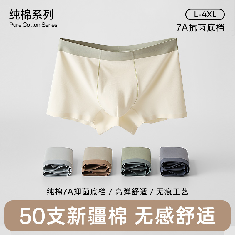 50S新疆棉无痕纯棉男士内裤纯色青年男生短裤纯棉平角裤现货批发