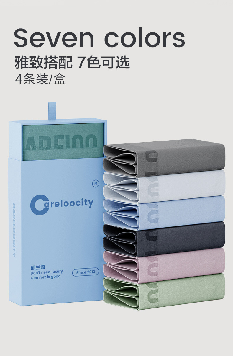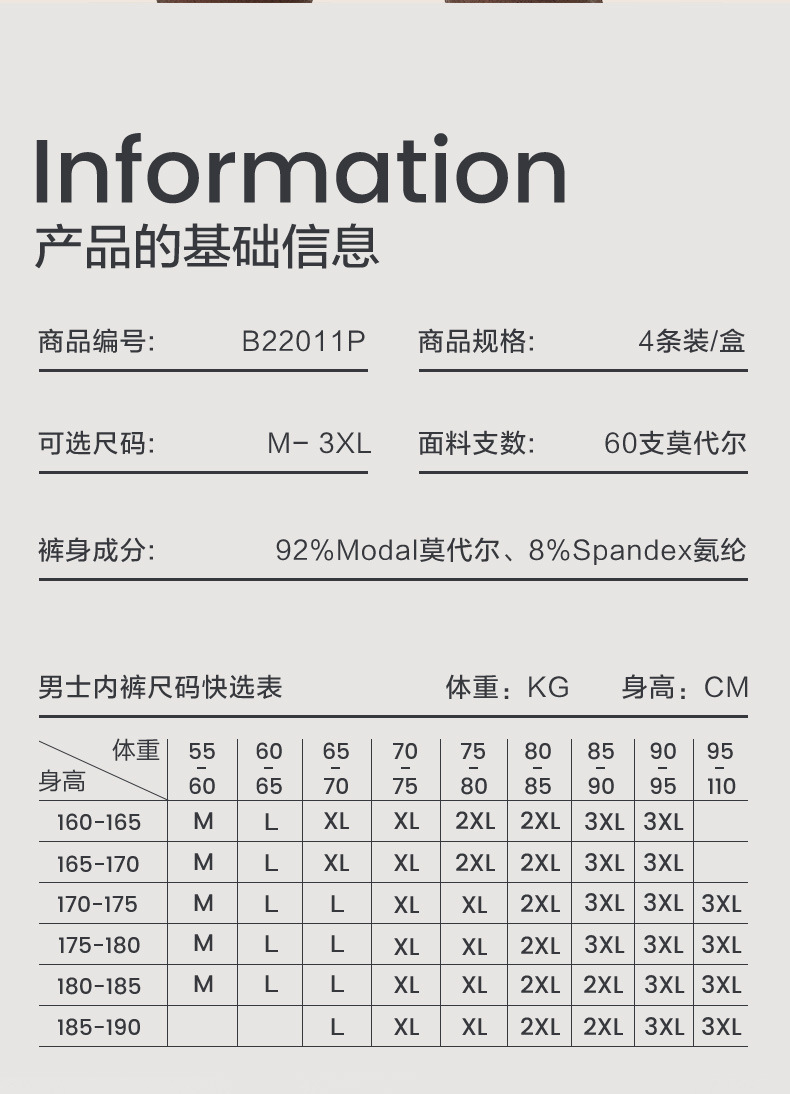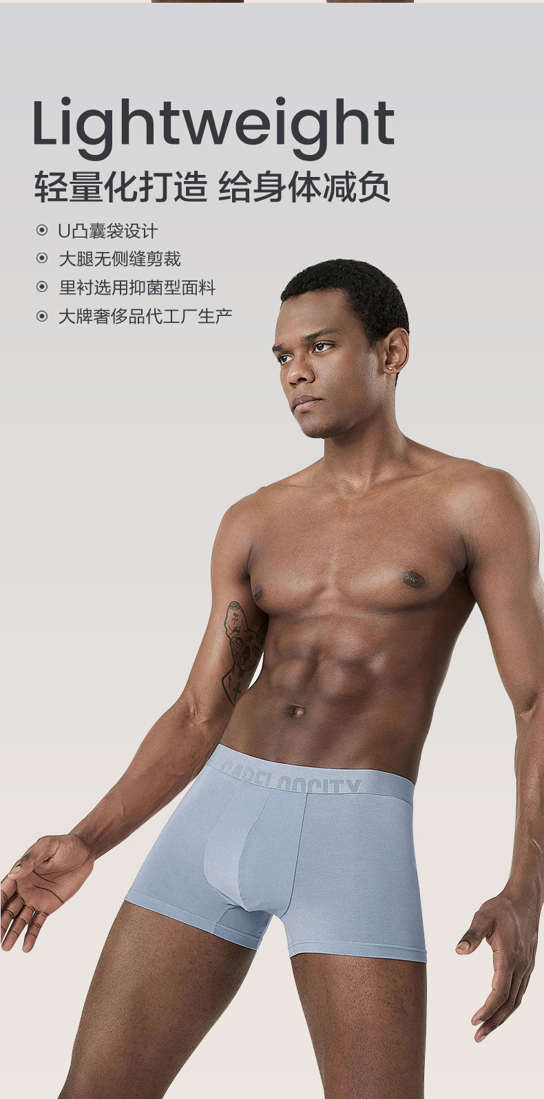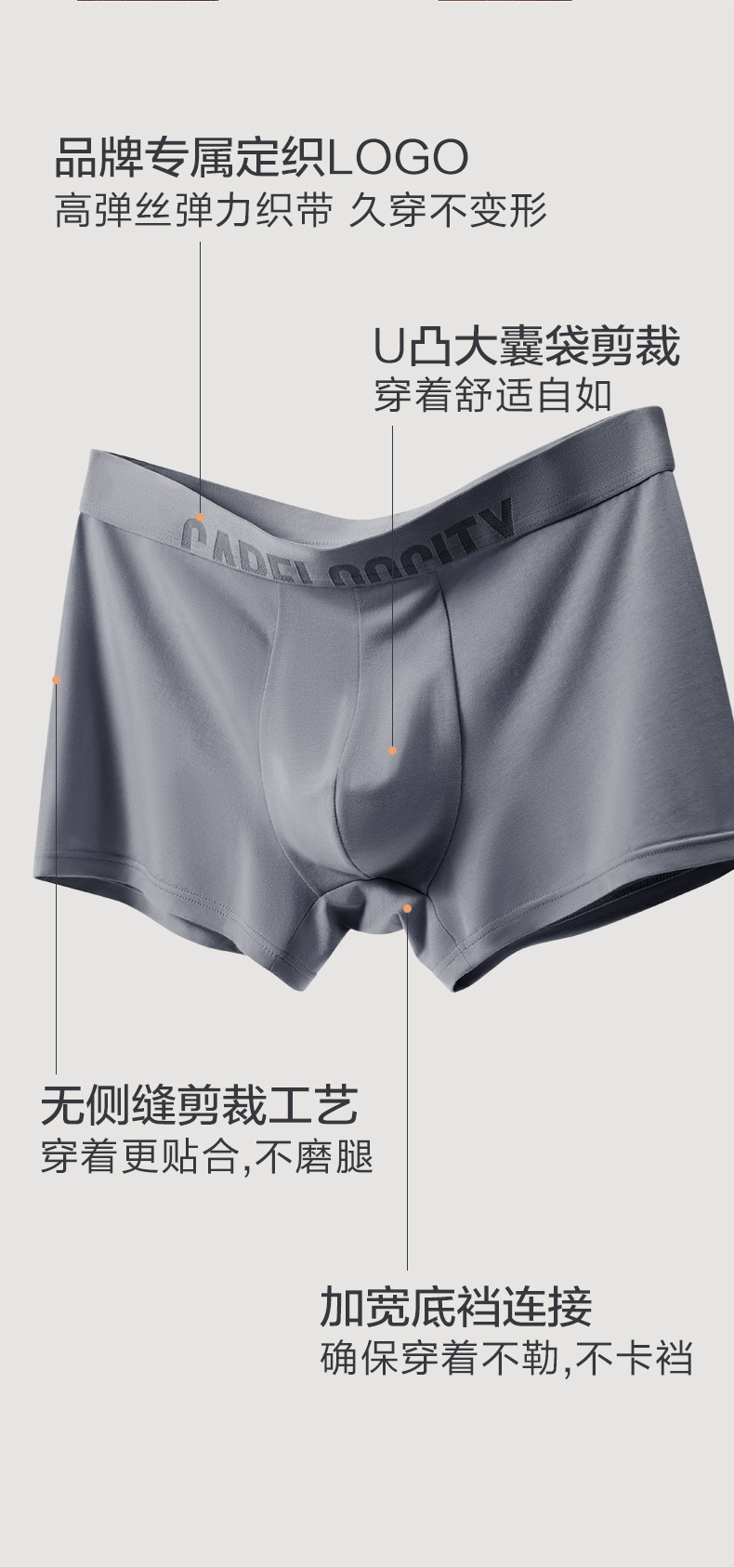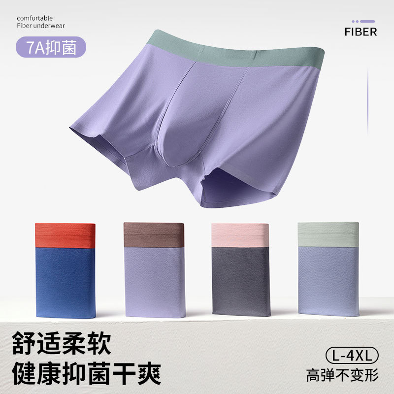 新款秋冬60支兰精莫代尔男士内裤 中腰透气平角7A抗菌四角短裤头