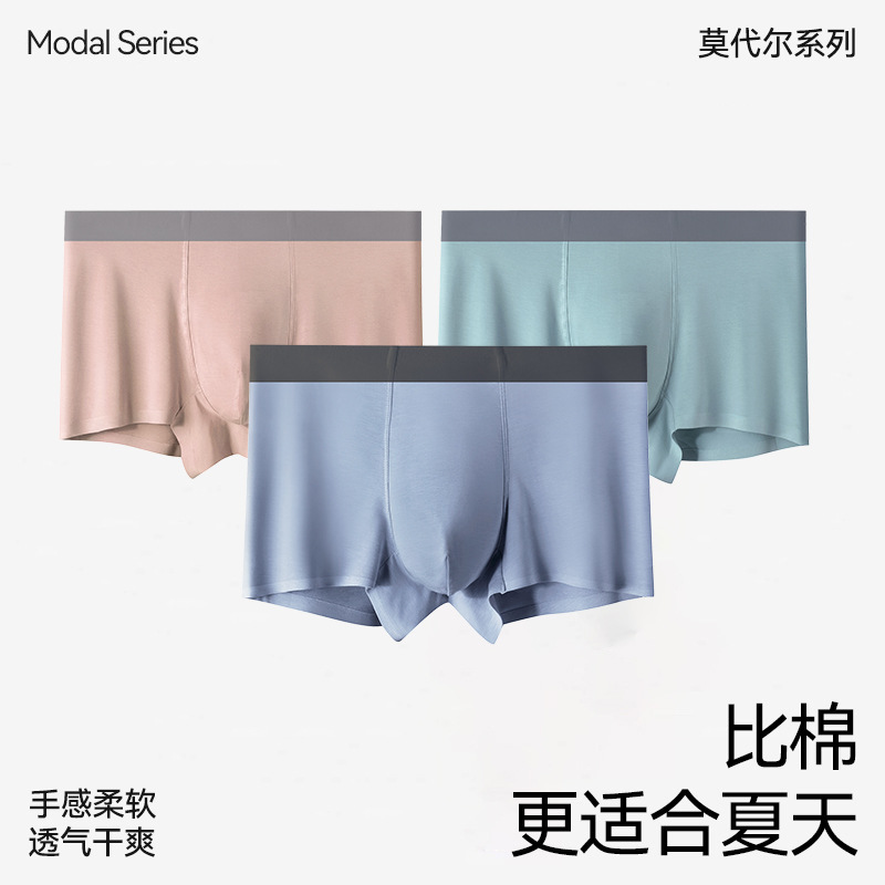 2026新款莫代尔男士内裤 平角抗菌夏季薄透气大码男生四角内裤头