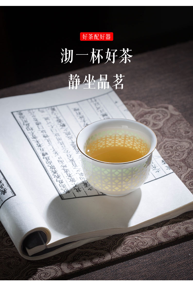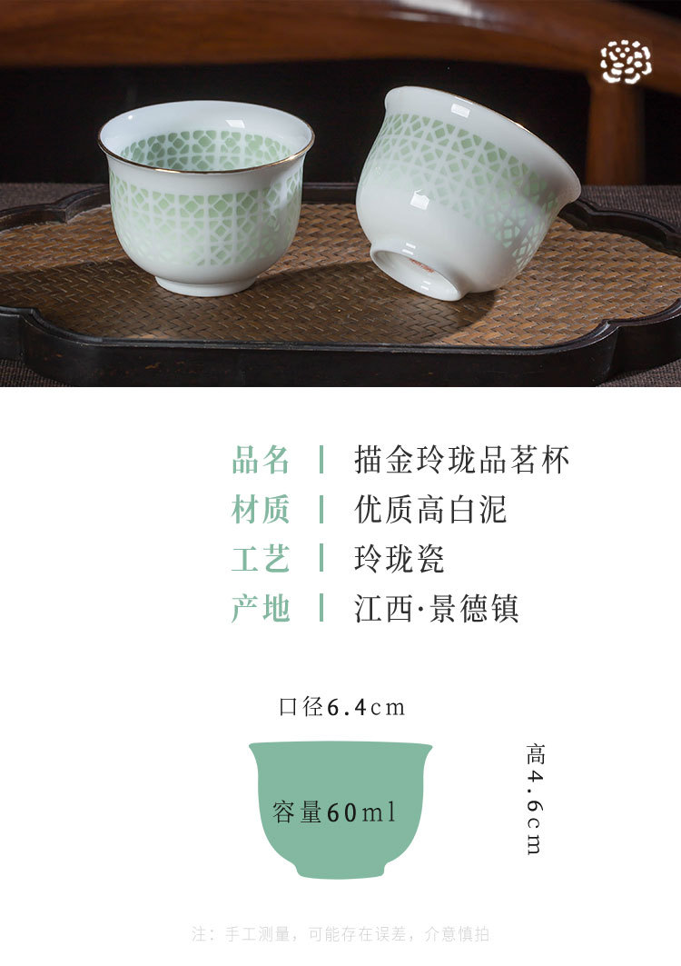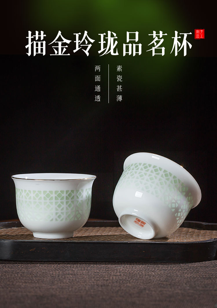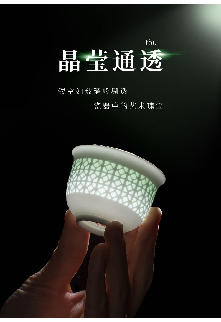 景德镇陶瓷功夫小茶杯手工镂空玲珑瓷品茗杯家用个人单个喝茶杯子