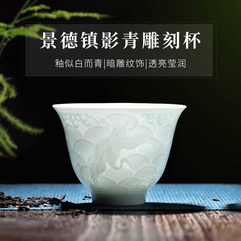 景徳鎮の陶磁器の影青の復古の手作りの杯の主人の杯の工夫の茶器の大きいサイズのお茶のお茶の杯の家庭用のシングルカップの個