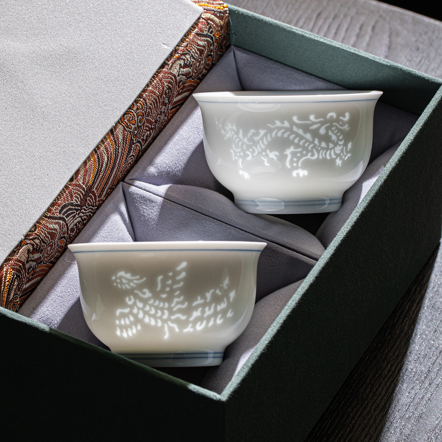 玲珑瓷龙凤压手杯功夫茶具陶瓷主人杯复古中式茶杯大容量家用杯子