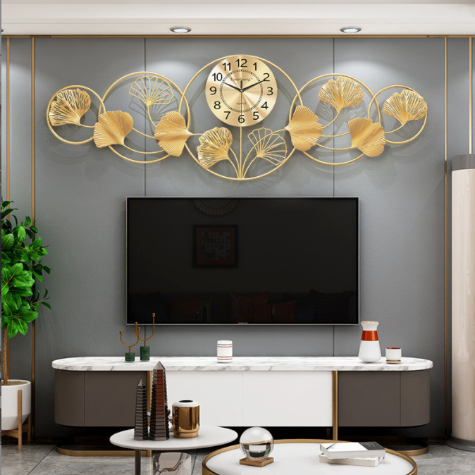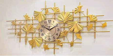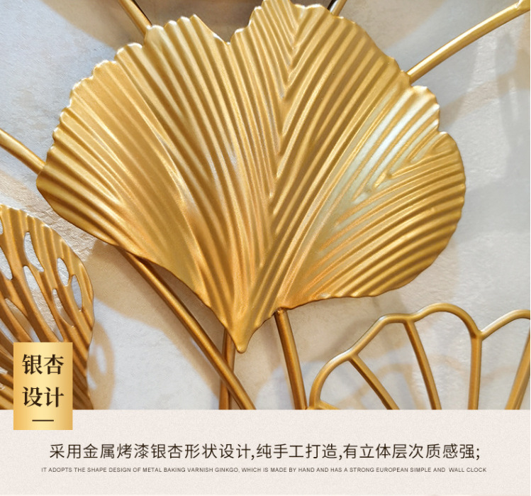 新中式銀杏葉壁掛け時計 リビングルーム ファッション ライトラグジュアリー 壁飾り 静音壁掛け時計 装飾