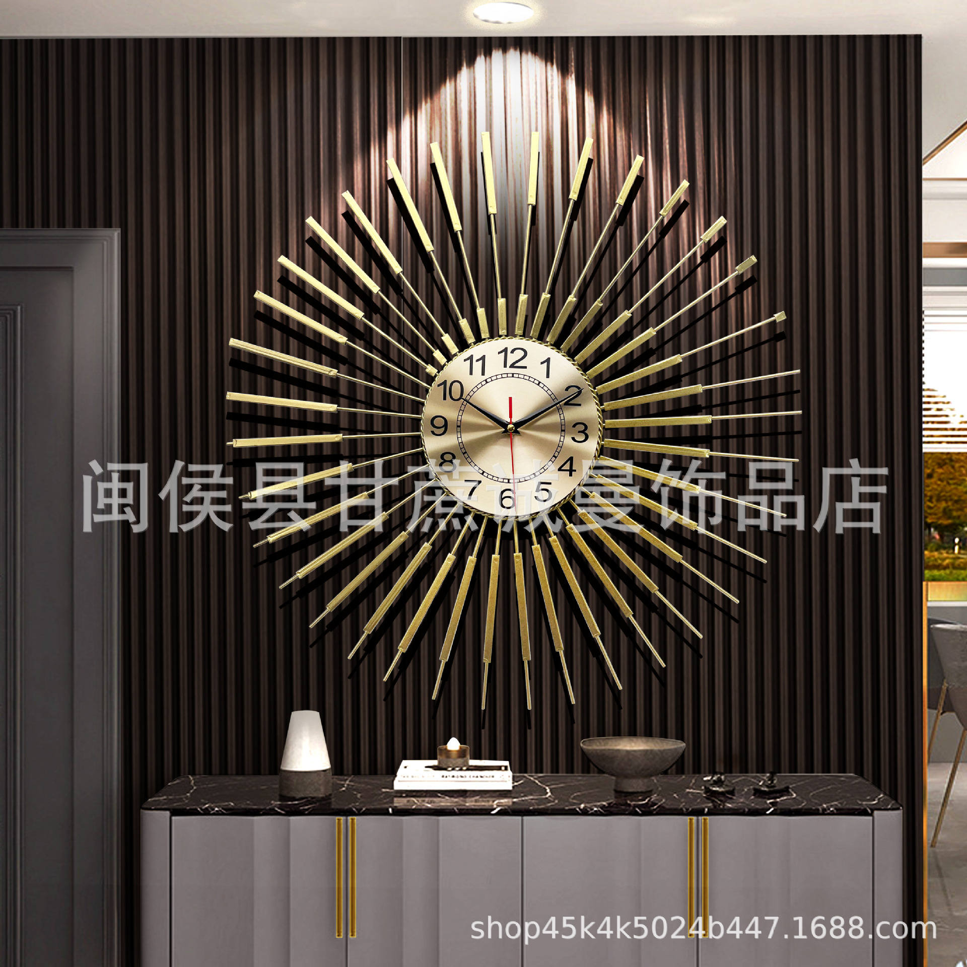 クリエイティブリビングルーム時計金属壁時計モダンなミニマリスト装飾絵画北欧スタイルクロスボーダーホットスタイルライト高級壁画
