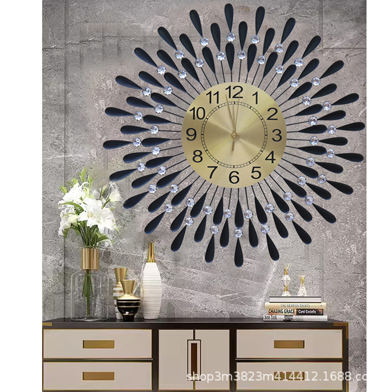 アイアン製壁掛け時計 リビングルーム 高級感 モダン シンプル 装飾画 クリエイティブ時計 アイアン製ライトラグジュアリー時計 クロスボーダー人気商品