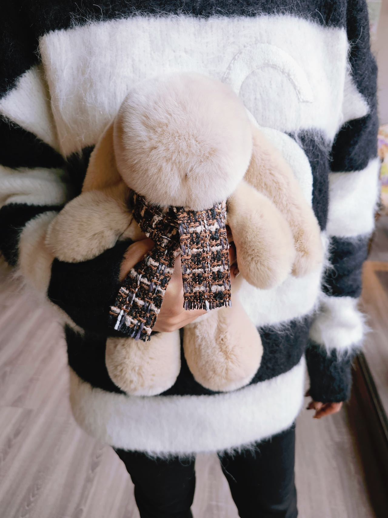 永生の花の卵の巻きの妹の鍵は手作りのかぎ針を掛けてかわいいぬいぐるみのウサギのカバンを編んで飾ります。