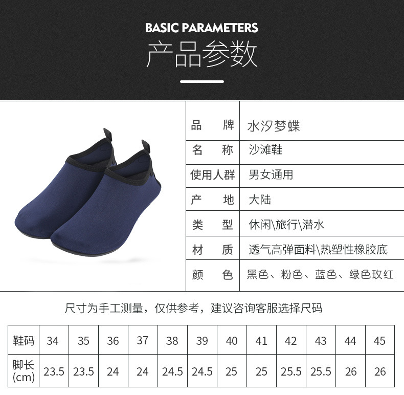 興城汐水夢蝶水着工場直売無地ビーチ靴大人子供用水泳靴かかとには追跡渓靴が貼られています。