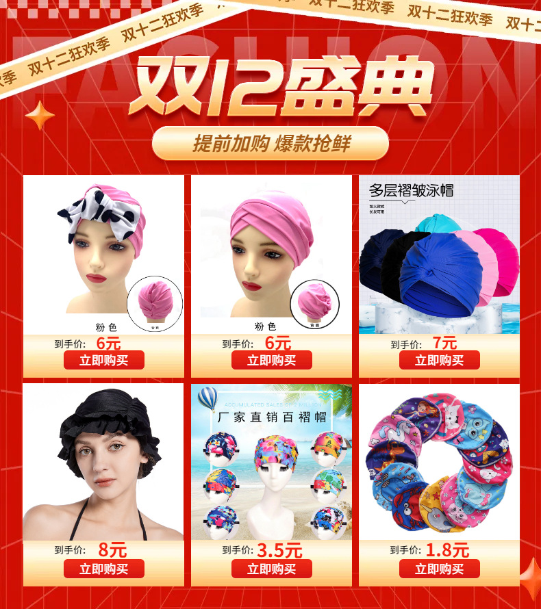 工場直販レースプリーツスイミングキャップ外国貿易プラットフォームドロップシッピングプラスサイズソリッドカラースイミングキャップサポートバーコード