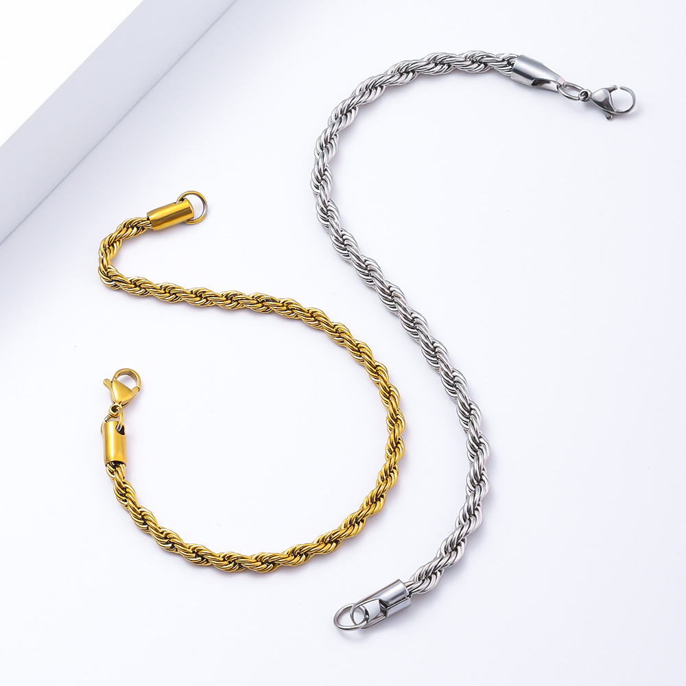ステンレススチールツイストブレスレットクロスボーダーヨーロッパとアメリカの女性のツイストチェーンヒップホップトレンディなメンズ18Kゴールドメッキチタンスチールブレスレット