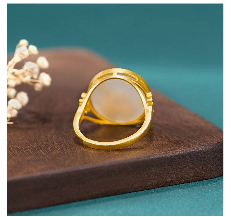 拾億レトロ新中式瑪瑙和田玉オープンリング女性用ニッチ高級軽奢古風気質ジュエリー