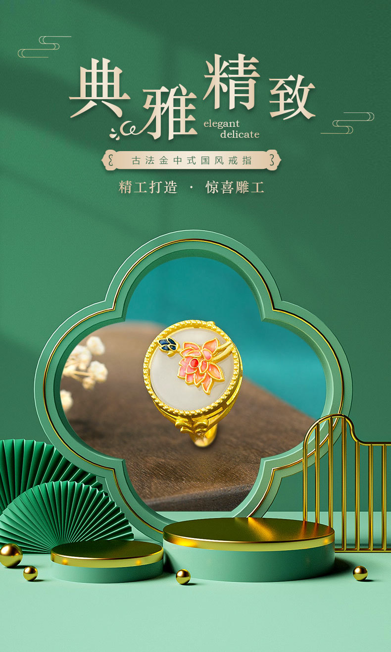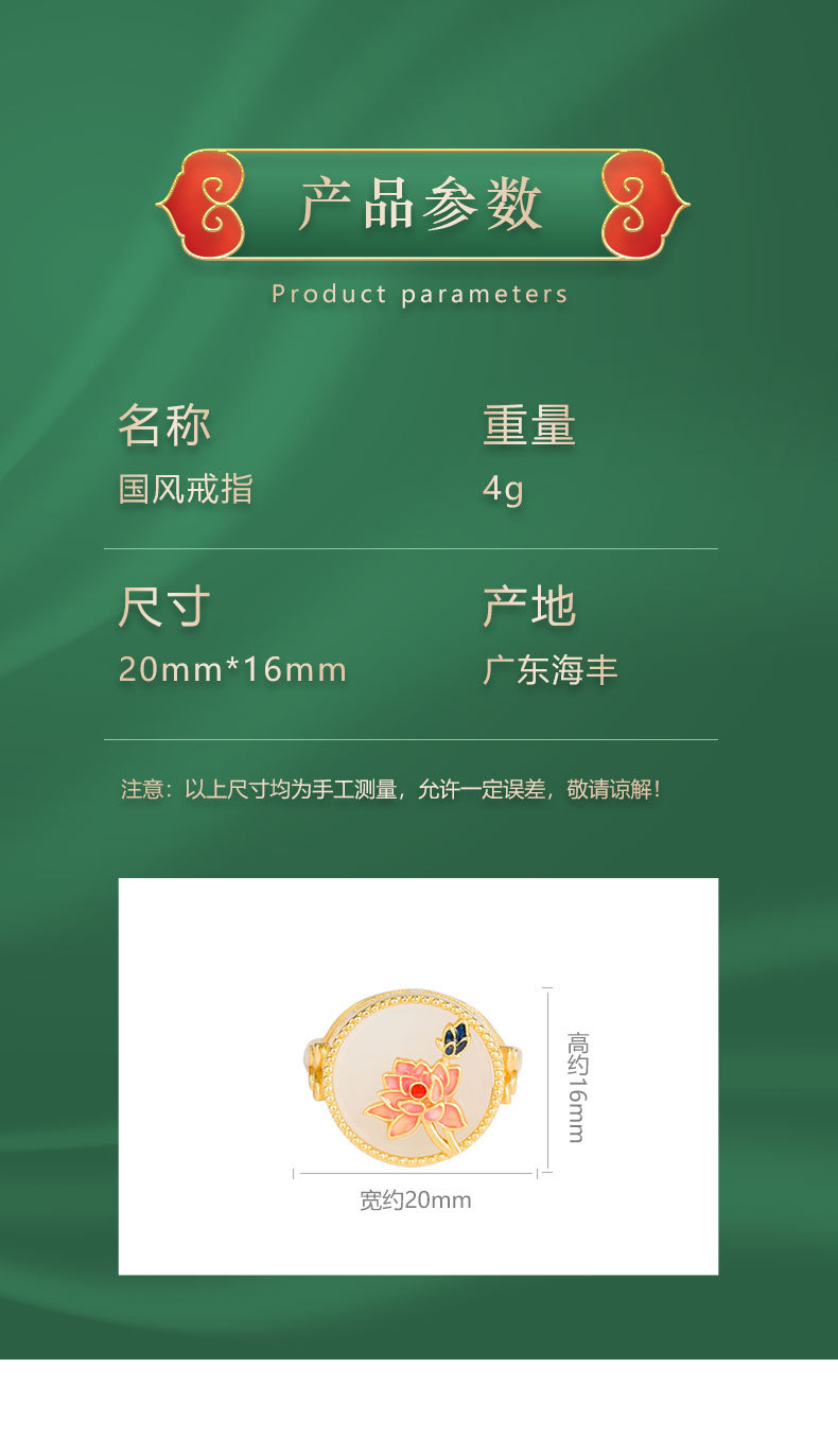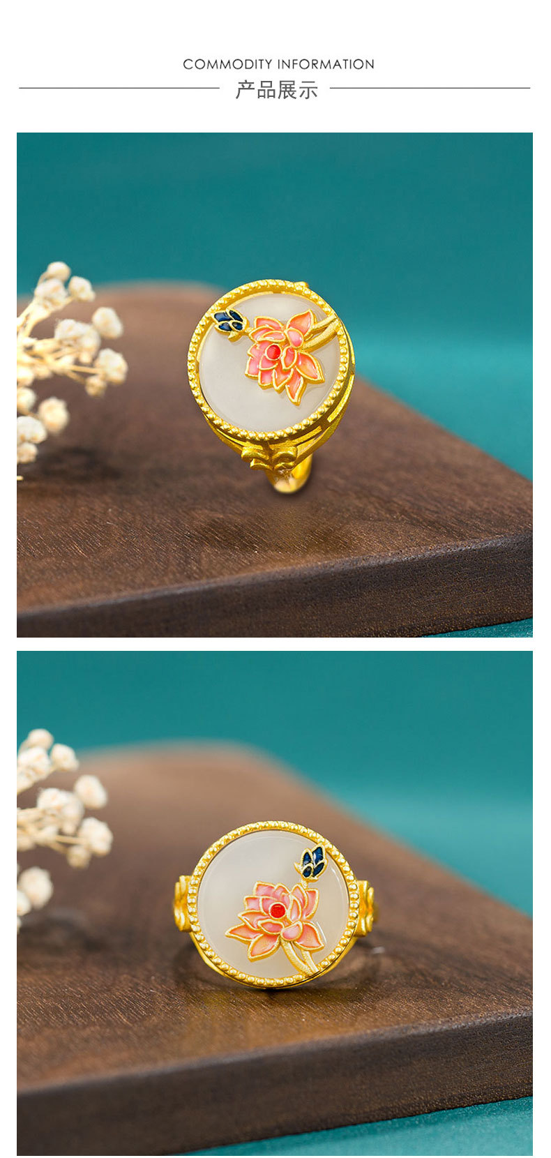 国潮復古中国風エナメル彩蓮の花は和田玉の口の指環の新しい中国式の古風の百合の装飾品の女性をまねます。