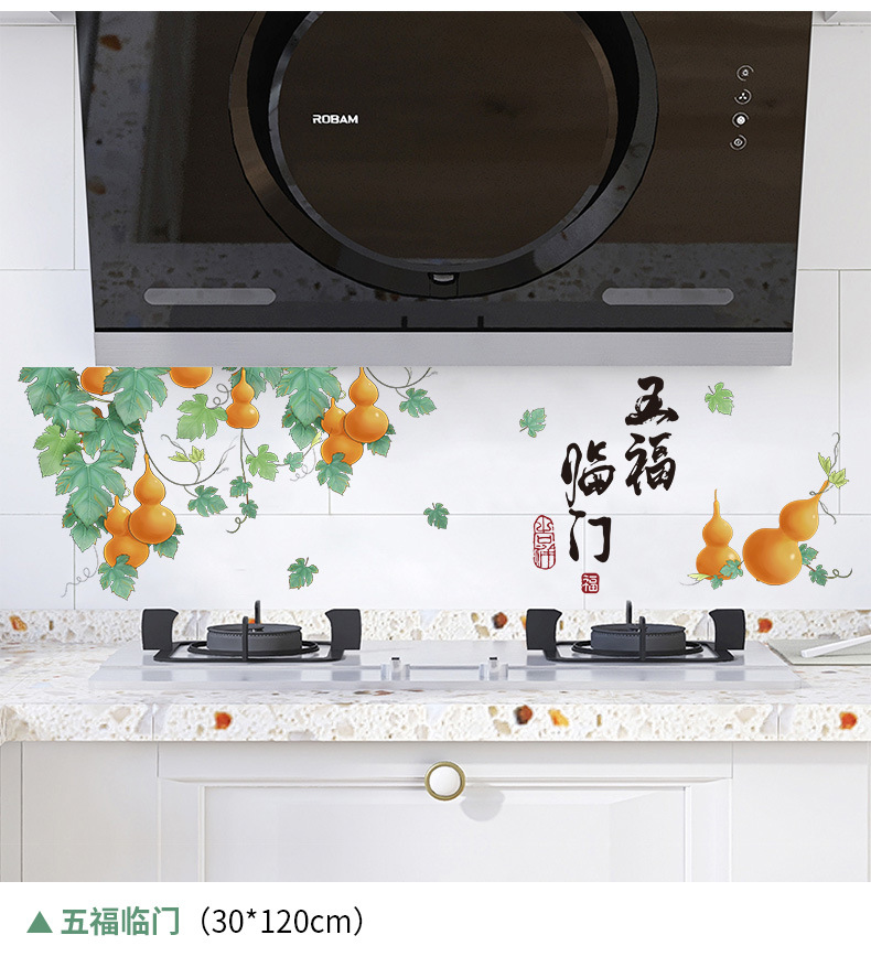 厨房防油贴纸防水自粘耐高温灶台油烟机蒸蒸日上乔迁之喜新居装饰