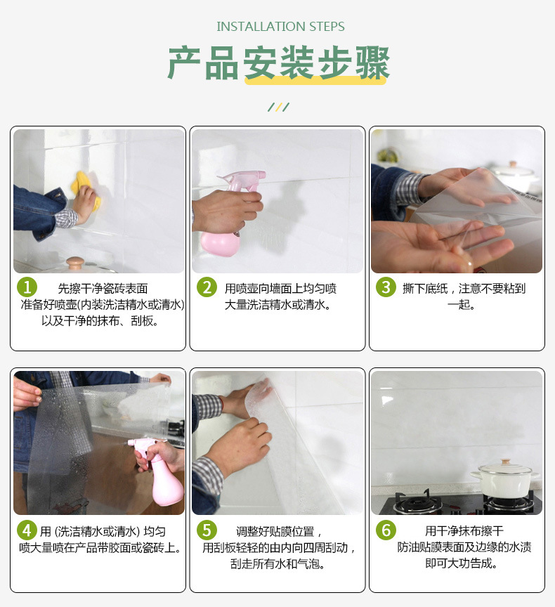 台所の防油シールは防火耐高温防水で壁紙を貼って、かまどのレンジフードの壁に貼り付けて、卸売りを代行します。