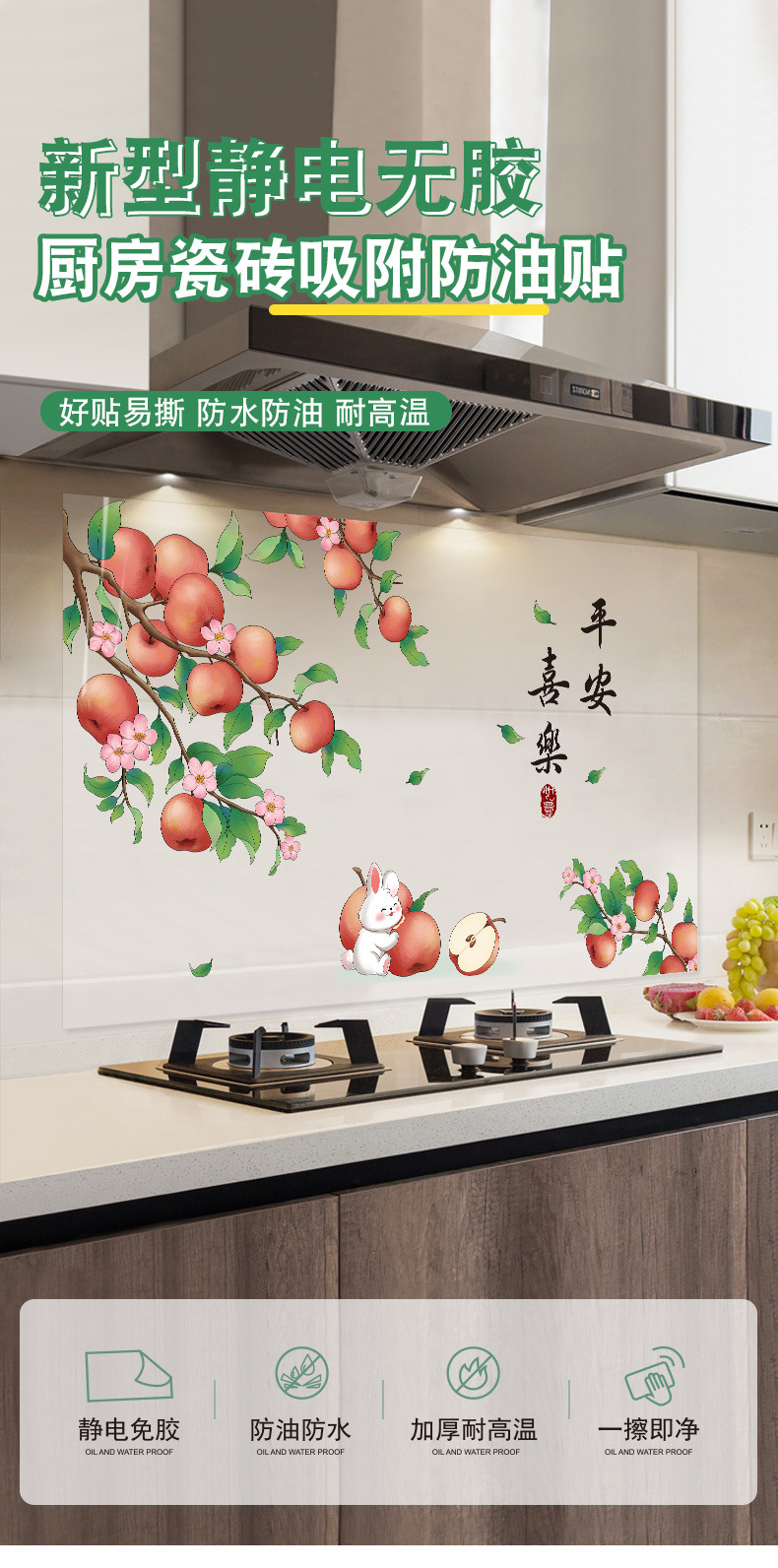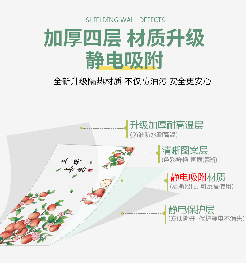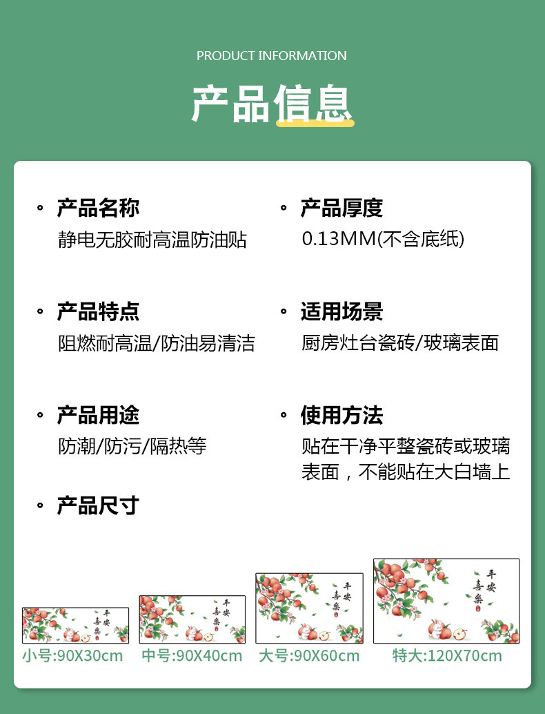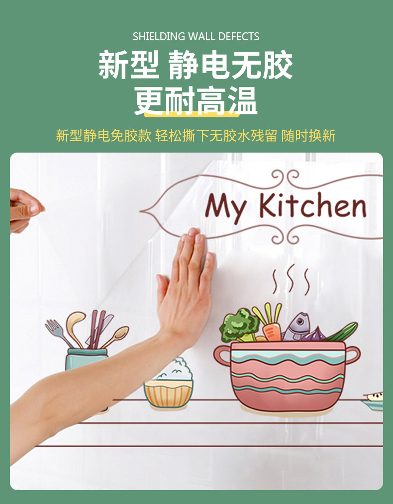 静電気防油貼付耐高温厨房防油シール防火調理台透明増厚吸着シール自己接着防水