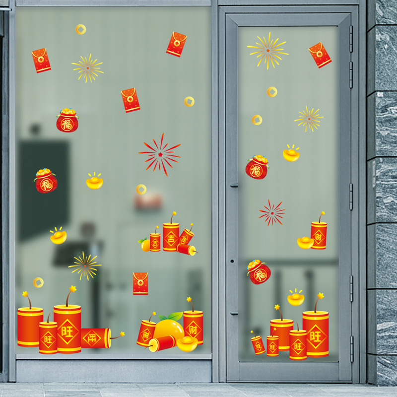 新年元旦静電気貼付画春節正月装飾品龍年配置ガラスシールドア貼り窓貼り花貼り