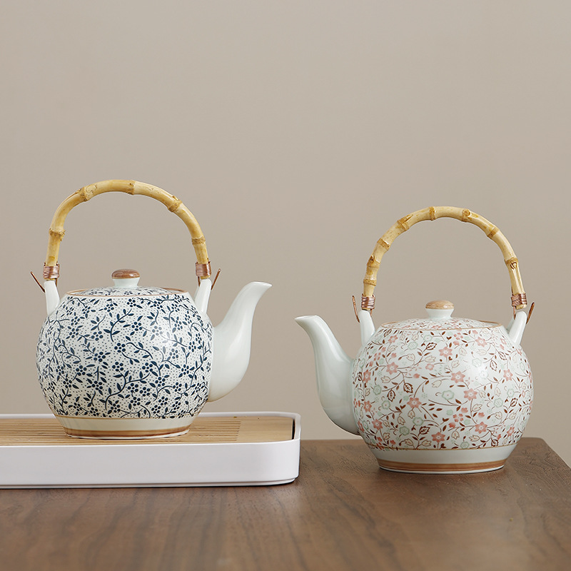同心提梁壶大容量泡茶壶家用日式田园风陶瓷茶具带过滤网青瓷单壶