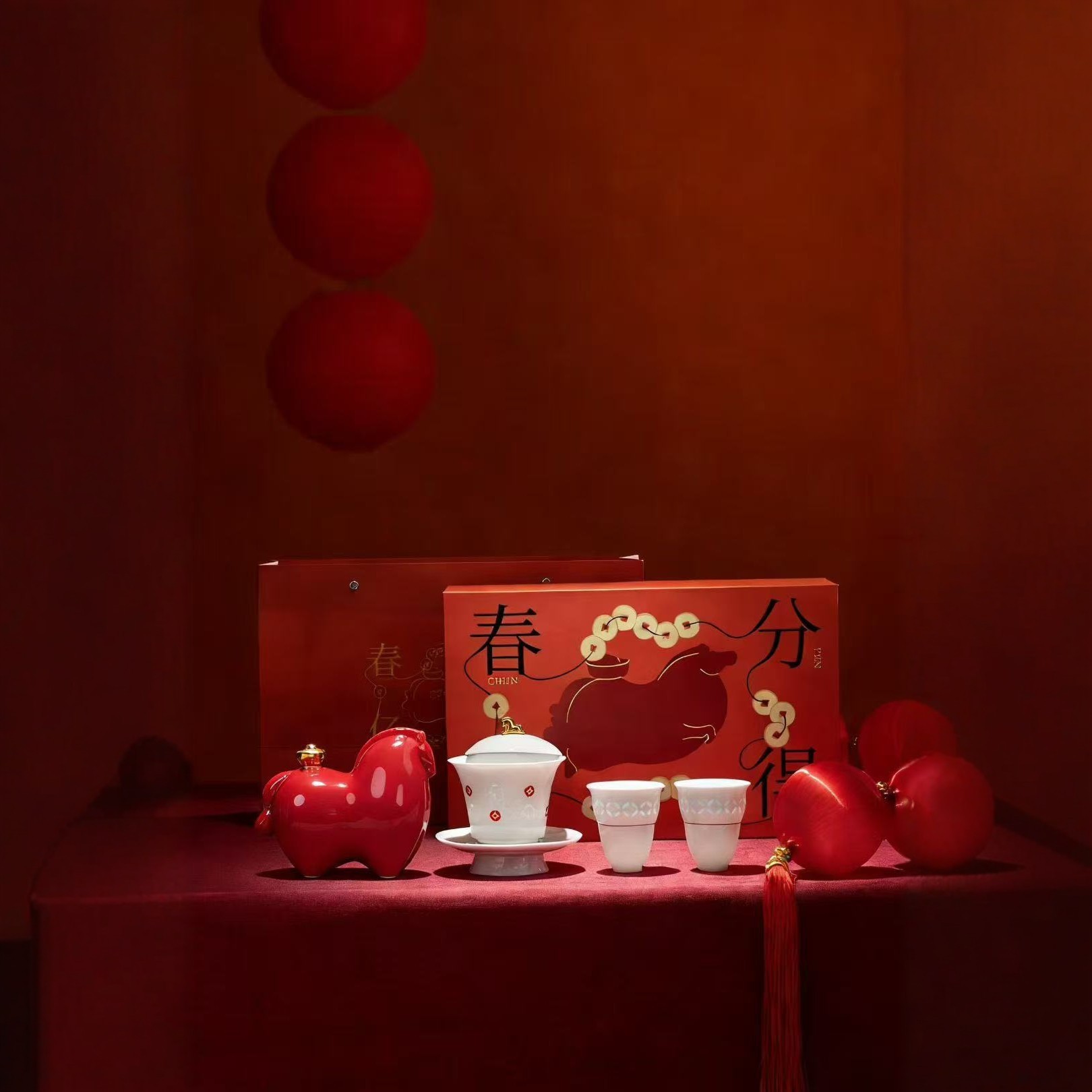 马年文创伴手礼生肖马摆件玲珑盖碗生主人杯礼盒装年会尾牙送礼