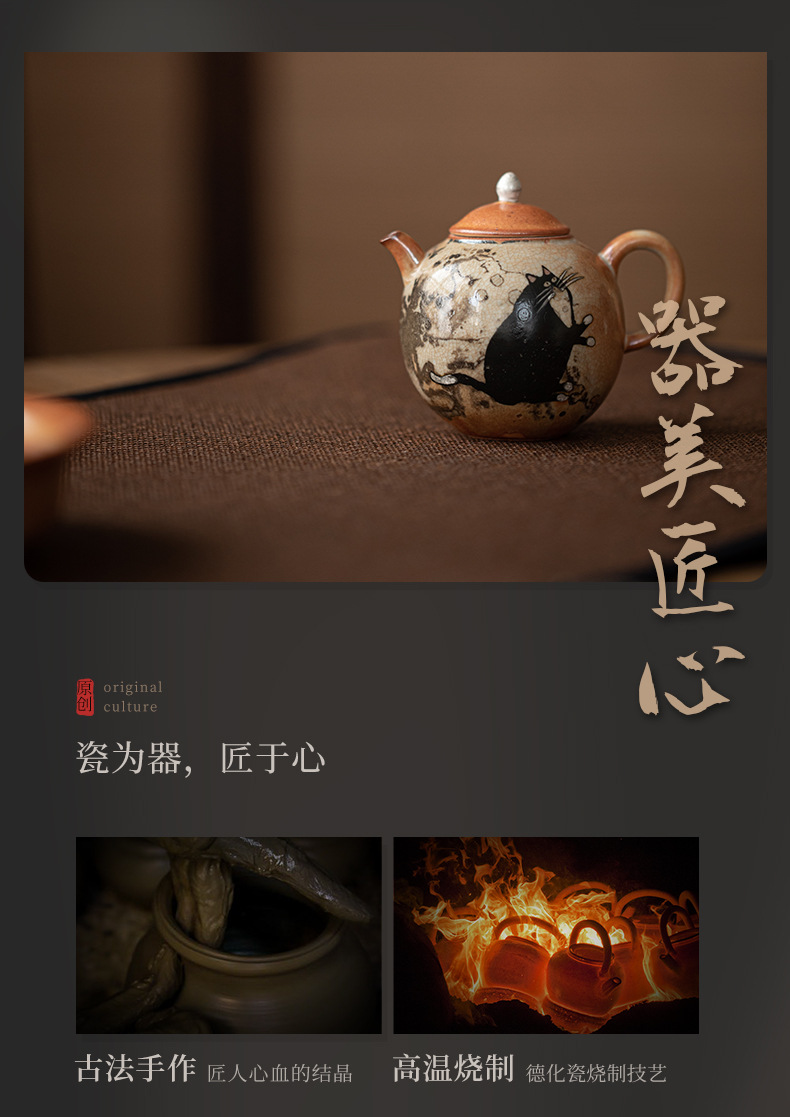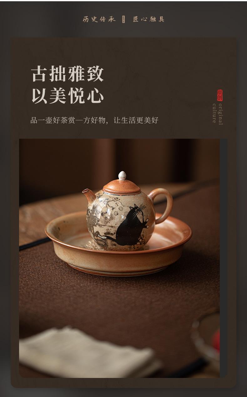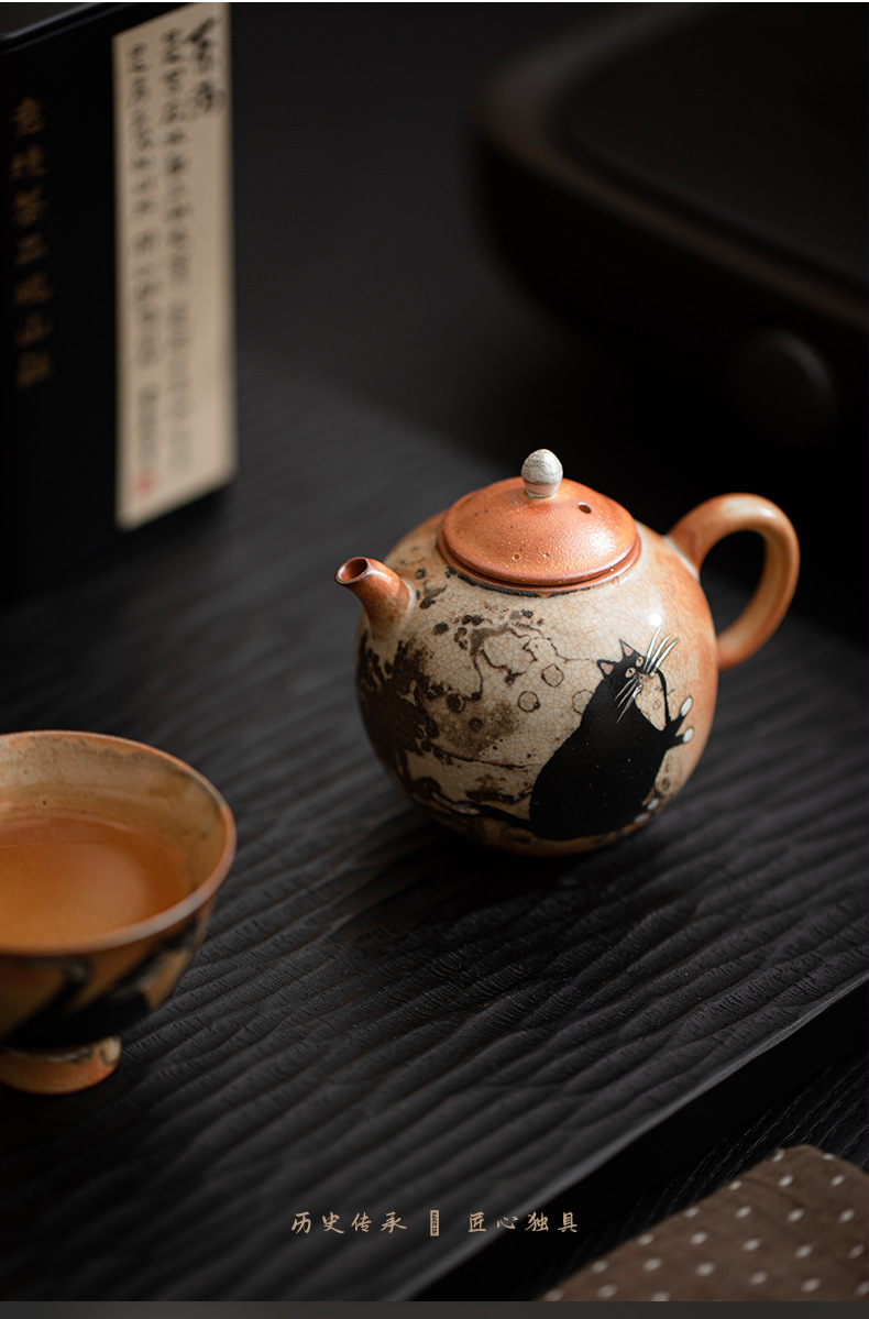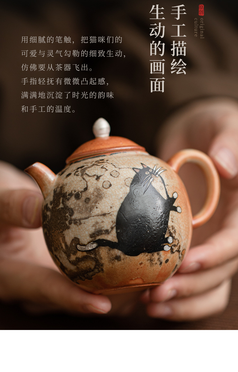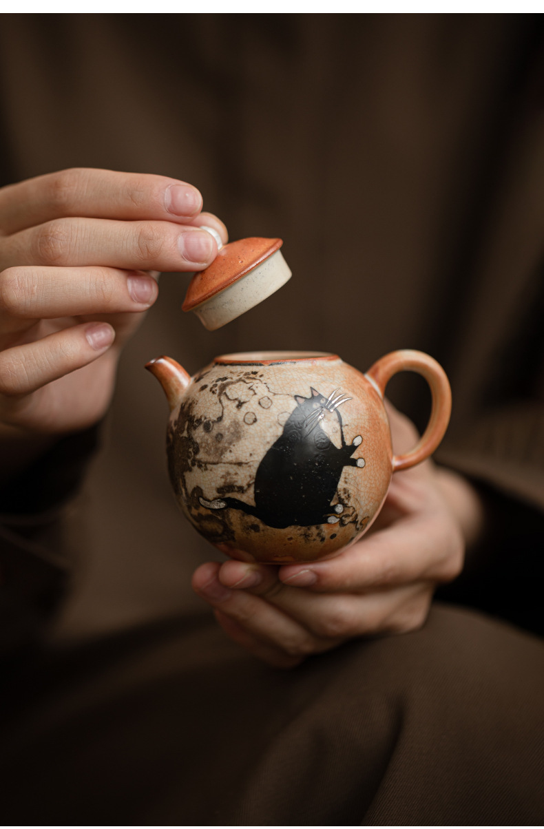 手作りの絵銀の肥えた猫のティーポットの工夫のティーポットのレトロな志野焼はティーポットの陶磁器のシングルポットの高級品を飲みます。