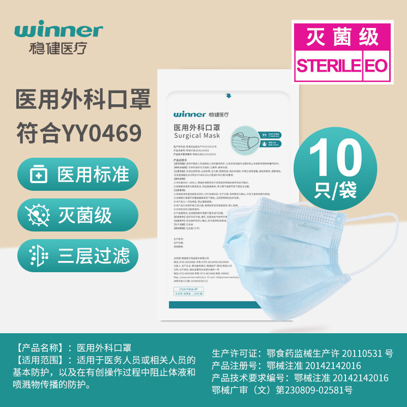 維徳医療医療用外科マスク使い捨て白色青色医療用マスク滅菌通気メルトブローン布三層